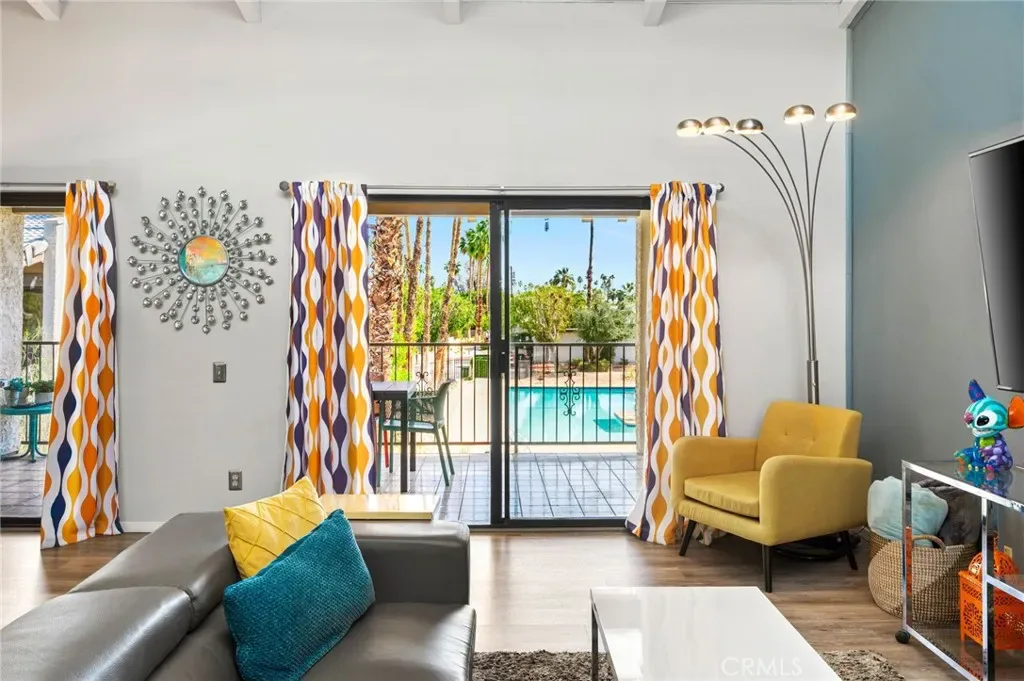 TURNKEY, top floor condo in the BEST location within the community overlooking the main pool and mountain views. Welcome to Rancho La Paz, resort living in the highly sought-after Deepwell neighborhood—one of South Palm Springs’ most desirable and centrally located communities. Ideally positioned directly across from Smoketree Shopping Center and just minutes from downtown Palm Springs (approx. 5-minute drive), this residence offers effortless access to the city’s best dining, shopping, art galleries, and nightlife. This thoughtfully designed floor plan features two spacious ensuite bedrooms positioned on opposite ends of the Great Room, providing maximum privacy—ideal for guests, roommates, or a second-home retreat. The kitchen is upgraded with granite countertops and new stainless steel appliances, opening seamlessly into the main living space. Soaring cathedral ceilings with clerestory windows fill the Great Room and dining area with natural light, creating an open, airy ambiance that embodies the Palm Springs lifestyle. The home has been recently painted throughout and newer laminate flooring offering a clean, move-in-ready presentation. Step outside to your expansive private balcony patio spanning the full width of the home, accessible from both the living room and primary suite. Enjoy peaceful pool, treetop and mountain views and indoor-outdoor living year-round. Within the community, residents enjoy resort-style amenities including: 3 Pools & Spas, Tennis & Pickleball Courts, Dog Park, Beautifully landscaped, well-maintained grounds, Dedicated covered parking, Unmatched Location & Lifestyle: Walking distance to Koffi, Elmer’s, and Smoketree Shopping Center, 5 minutes to Downtown Palm Springs, Close to iconic hiking trails including Indian Canyons & Tahquitz Canyon, Near Palm Springs Art Museum and cultural attractions, Convenient access to golf courses, resorts, and Palm Springs International Airport. HOA allows short term rentals 30 days and longer. Whether you’re seeking a full-time residence, weekend getaway, or investment property, this home delivers the perfect blend of privacy, convenience, and classic Palm Springs living.