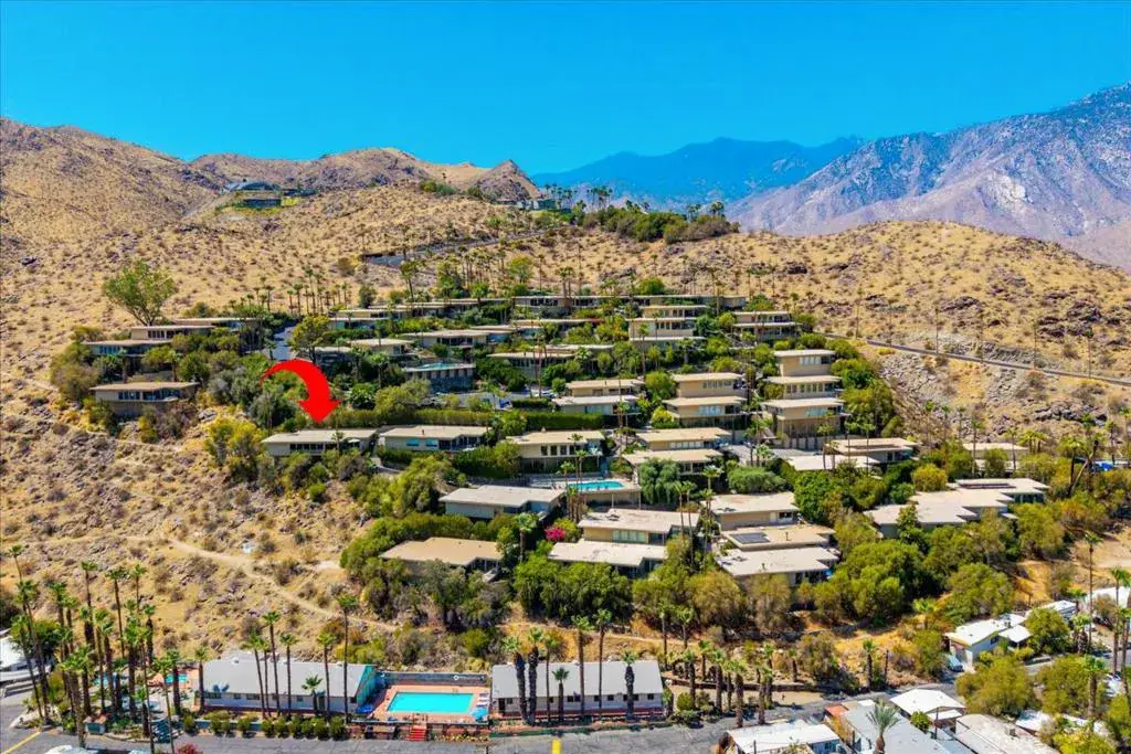 Perched high on a coveted Southridge hillside, this rare freestanding condominium home offers unmatched privacy and sweeping views that capture the very essence of Palm Springs. From floor-to-ceiling window walls and an expansive balcony, take in a dazzling panorama stretching from the Indio Hills across Joshua Tree’s rugged ridges to Big Bear’s peaks–framed by the iconic Palm Springs windmills. Designed in 1964 by noted architects Leroy Rose and Harold Carlson, the residence has been completely rebuilt from the ground up. Every beam, floor, and support has been replaced, along with a new entrance deck and rear balcony, creating a home that is both timeless and enduring. Inside, a professionally designed contemporary mid-century interior showcases open, inviting living spaces. The chef’s kitchen boasts custom maple cabinetry, Italian terrazzo counters imported from Tuscany, Jenn-Air Pro appliances, and Mannington Vermont maple hardwood floors. The primary suite is a serene retreat with double vanities, Italian mosaic tile, a frameless glass shower, Silestone granite finishes, and a custom walk-in closet. The guest suite offers equal sophistication with an Italian console vanity, Roman tub, and frameless shower. Throughout the home, thoughtful details elevate living and entertaining, including custom-built furnishings by LDC Design Studio, designer Italian lighting, recessed wall-wash fixtures, blackout energy-efficient blinds, a new tankless water heater, stackable GE washer and dryer, and a private outdoor dining area with ceiling fan and canvas privacy paneling. With only the sky and mountains as neighbors, this architecturally significant freestanding condo by Rose & Carlson delivers the rare combination of pedigree design, privacy, and world-class views–perfectly embodying the Palm Springs lifestyle. Adding to the ease of ownership, the HOA fee includes water and trash service, ensuring convenience and peace of mind.