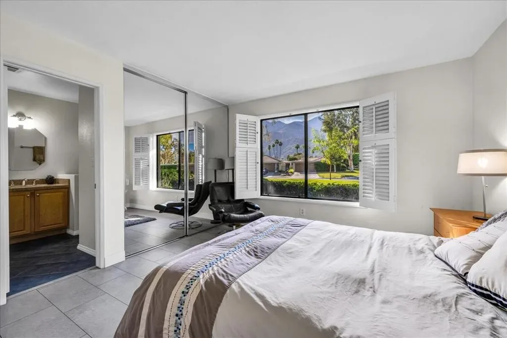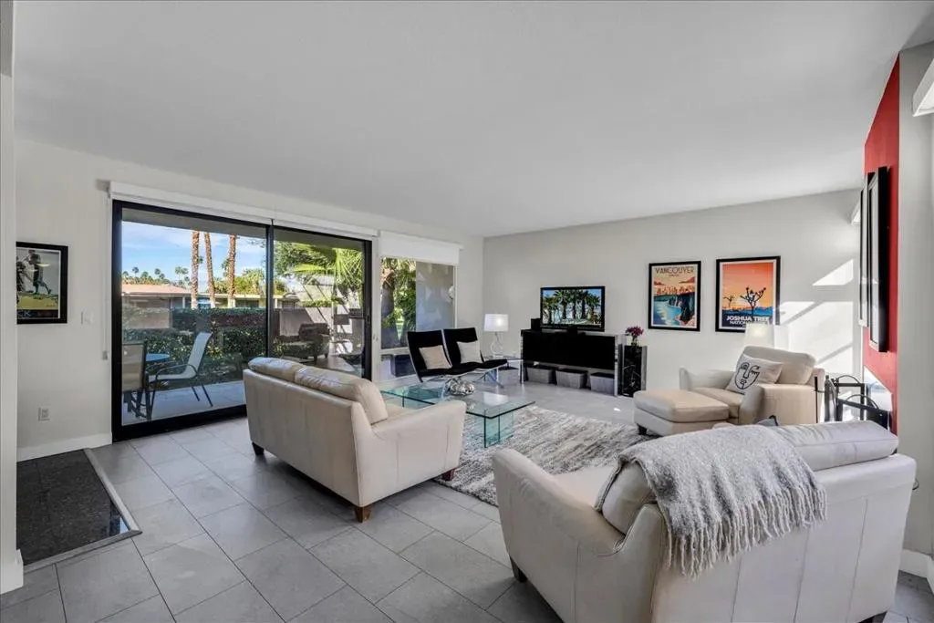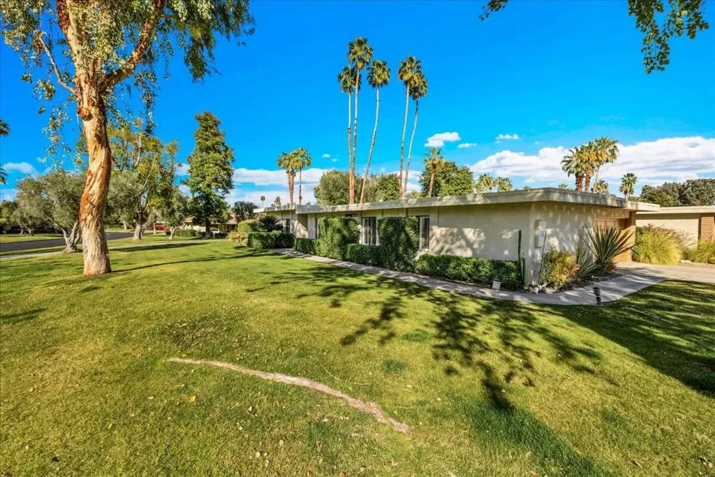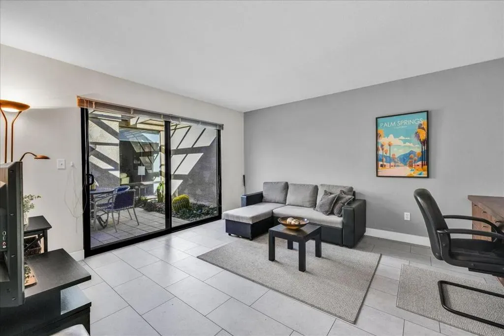 Discover Sunrise East–an enclave of 130 modern styled condos on a sprawling 44 acres in iconic Palm Springs, California with six community pools and spas for relaxing your way! 2202 Oakcrest is a light & bright end unit with 3 bedrooms and 2 baths. Complex also includes tennis & pickleball courts. Sunrise East epitomizes a natural balance of greenbelts with lush hedges and old-growth trees, while also working to reduce its water footprint–the result is simply gorgeous! Come explore well-lit sidewalks & trails within serene park-like settings of this true oasis. Uniquely situated on an elevated lot with wide swaths of vibrant green fields of grass separating from the curb of the center of the complex. As you enter this stylish home, floor-to-ceiling panes of glass and an open floor plan set the stage, complete with a fresh and exciting naturally lit atrium! Lots of windows to let the sunshine in, bright and open. Large great room with recessed lighting, center focal point fireplace, low maintenance luxury vinyl floor…spacious kitchen with granite counters, pass-through window to large patio; adjacent dining. Plus three large bedrooms, rather large baths, third bedroom offering flexibility as an office/den &/or guest room. Huge custom closets in each room, and ample storage throughout. And wait until you see the oversized, extra deep 2-car garages! This resort-like property is the IDEAL place to call HOME. Conveniently located just minutes from downtown Palm Springs. Sunrise East offers easy access to world-class dining, shopping, variety of local attractions and top-tier medical facilities. Stop searching and START living!