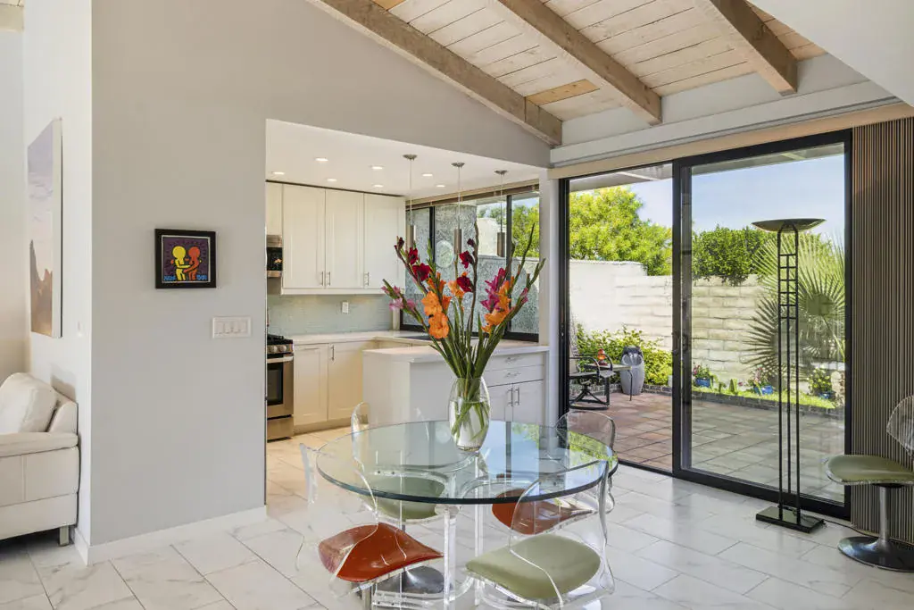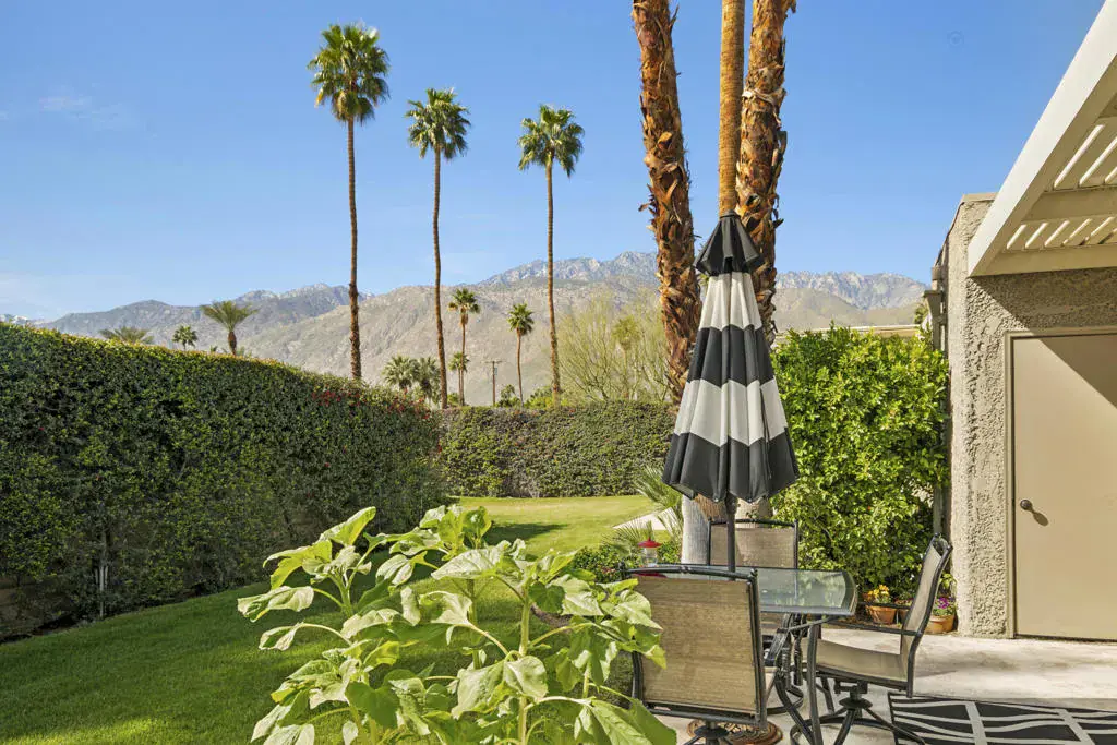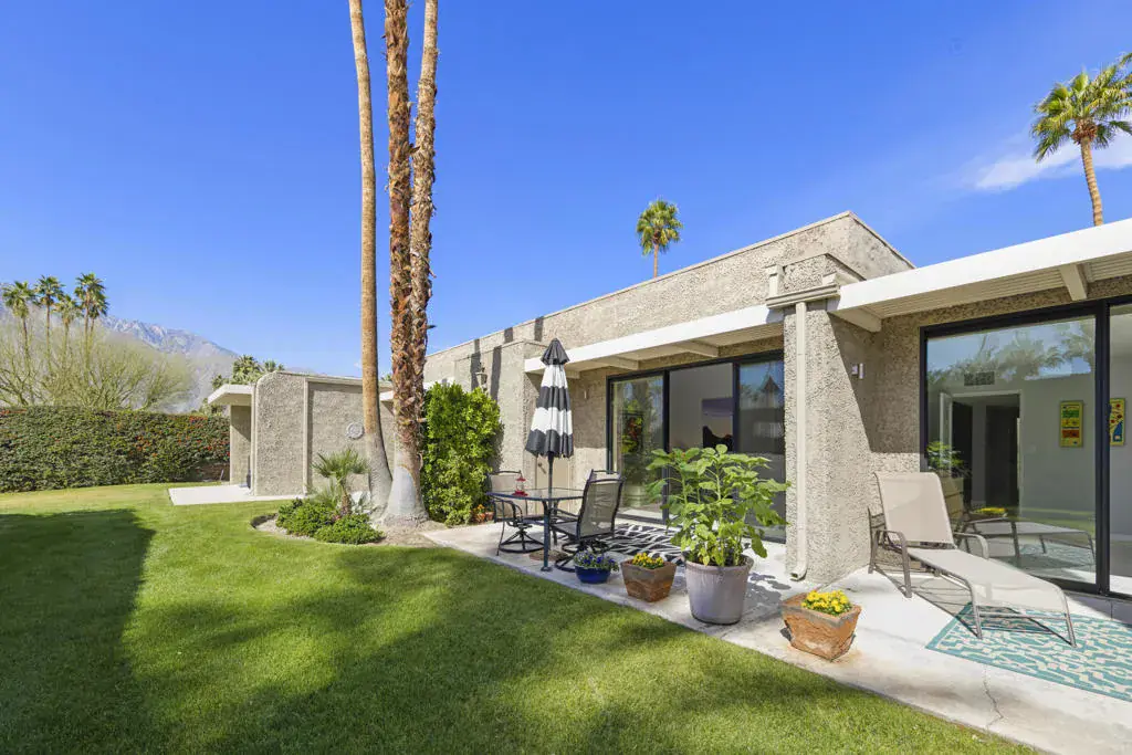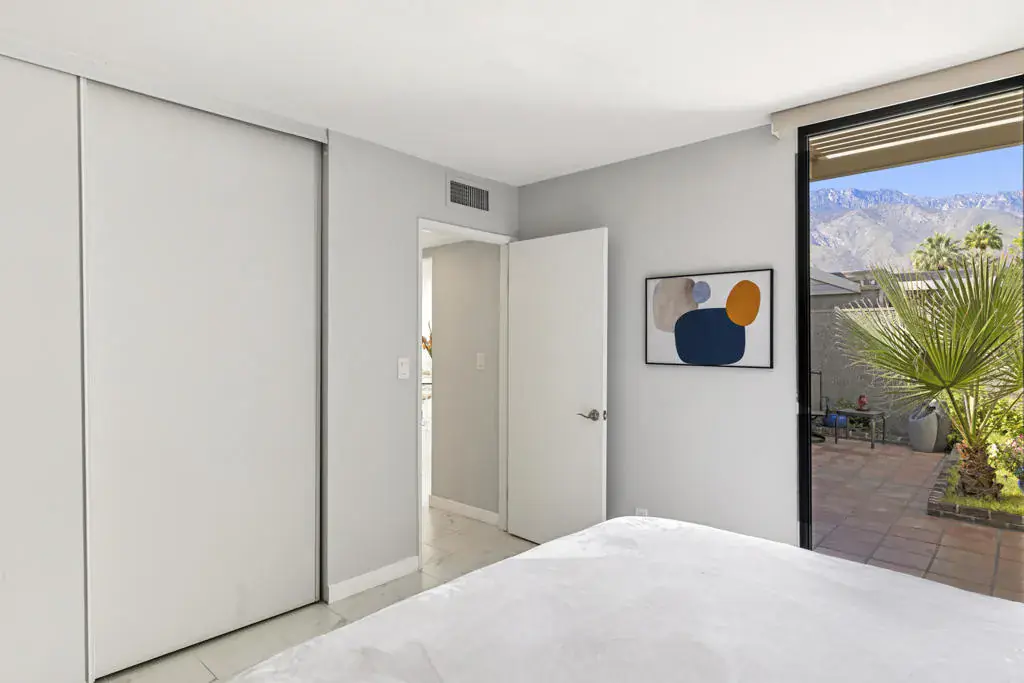 Located in the desirable Sunrise Oasis community, this single-level, 2 bedroom/2 bath condo offers light and bright living space in a prime central Palm Springs location.The updated interior features beamed ceilings in the living area, tile flooring throughout and a beautifully designed kitchen which anchors the main living space.This floor plan provides excellent separation of bedrooms. The guest bedroom features direct access to the enclosed front patio, while the spacious primary suite opens to the charming back patio. The primary bedroom has an updated bathroom with a walk-in shower and spacious walk-in closet.The enclosed front entry patio allows for the indoor/outdoor Palm Springs lifestyle, while the back patio space is perfect for coffee, a good book and maybe an afternoon cocktail, while enjoying the fabulous mountain view!Other recent upgrades include new windows (2022), HVAC (2022), ramadas added to the exterior for additional shade (2022), electrical panel (2023), and a new roof (2025), offering valuable peace of mind.Additional highlights include a 1-car garage, washer & dryer and convenient proximity to one of the community’s three pools. Sunrise Oasis is a low-density community on land you own (no lease!) with 3 pools and tennis courts, just minutes from downtown Palm Springs dining, shopping, entertainment and nightlife. Perfect for full time living or a vacation retreat!