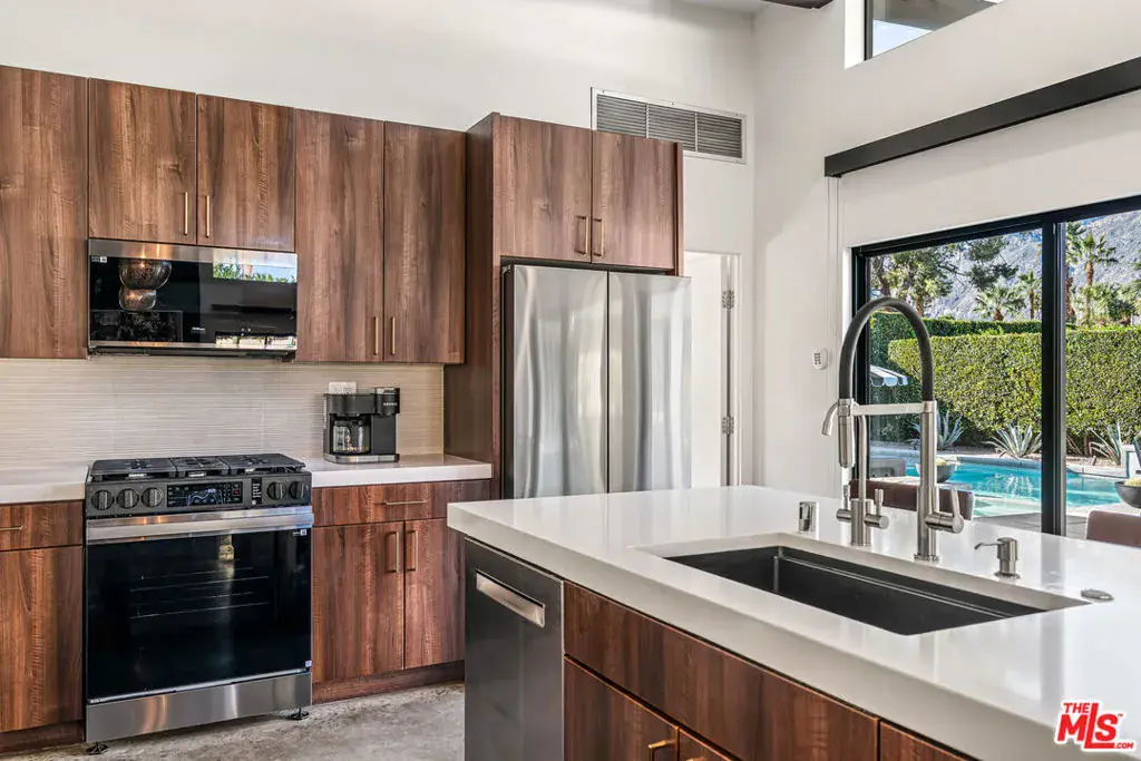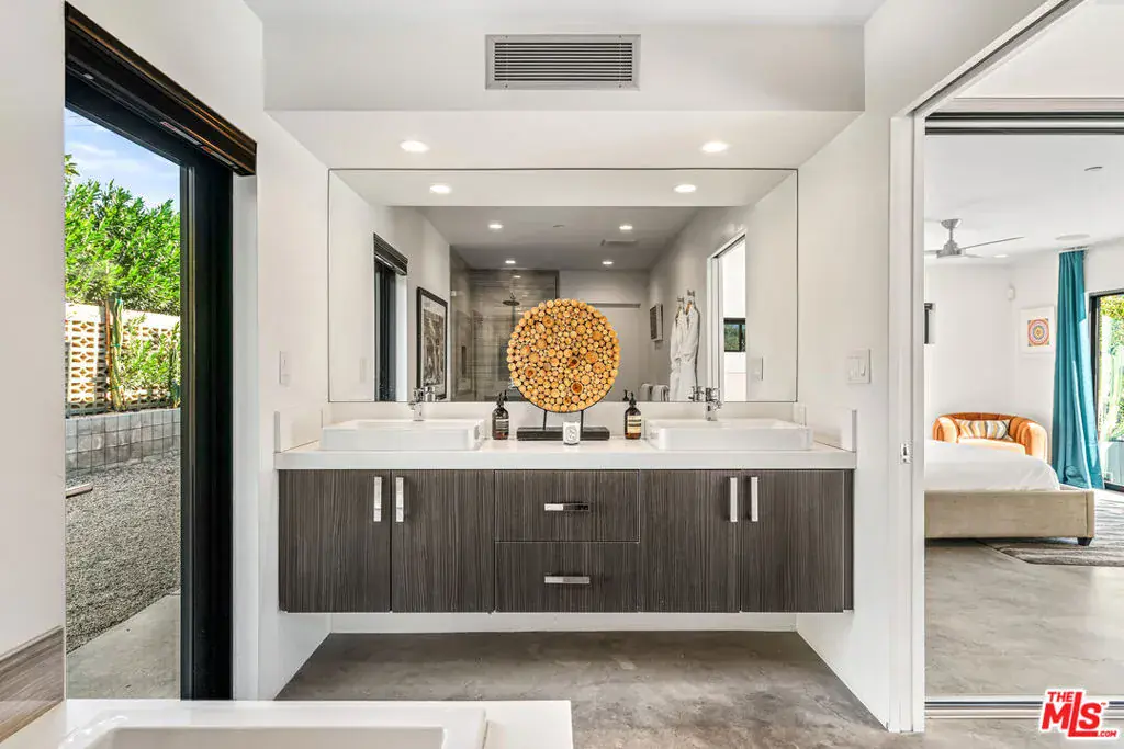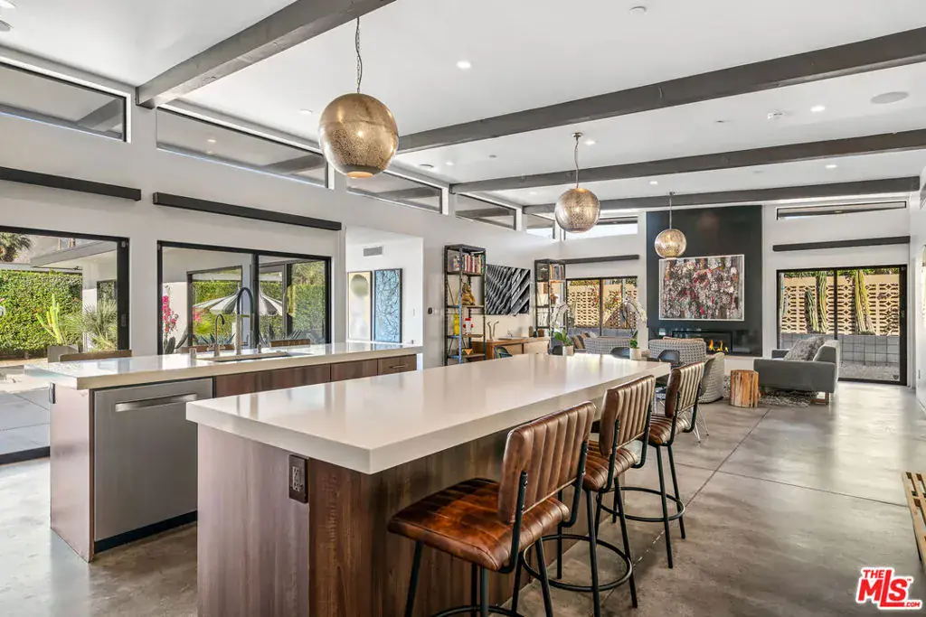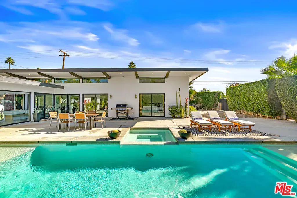 A RARE 5 ENSUITE BEDROOM RENTAL INVESTMENT OPPORTUNITY, 2070 Park Drive isn’t just a solid income property it’s a tax planning engine. Between accelerated depreciation, cost segregation potential, and suitability as a 1031 exchange replacement, sophisticated buyers can materially reduce taxable income while accruing real cash flow. Built in 2015, this mid-century inspired architectural estate is set on a gated corner lot with unobstructed Mt. San Jacinto views, delivering an exceptional blend of privacy, sophistication, & true resort-style living. Inside, polished concrete floors, soaring ceilings, and walls of Fleetwood sliding doors create a seamless indoor-outdoor flow. The expansive great room is ideal for entertaining and is anchored by a chef’s kitchen featuring dual Caesarstone quartz islands, stainless steel appliances, a built-in 44-bottle wine refrigerator, and a brand-new refrigerator with an integrated auto-filling filtered water pitcher and dual gourmet ice makers. A custom kitchen island includes instant hot water and filtered cold-water faucets. The living room’s beamed ceiling frames views of the quintessential mid-century breeze-block wall. All five spacious bedrooms offer private en-suite bathrooms & direct outdoor access. An attached casita-style suite with kitchenette, split A/C system, & private entrance is ideal for guests, multi-generational living, and is highly desirable for short-term rental use. Outdoors, enjoy your own private desert resort featuring a 42-foot saltwater pool with dual Baja shelves, spa, six-foot waterfall, fire pit, & multiple lounge and dining areas, all surrounded by lush desert landscaping. The property is fully enclosed by block walls with mature ficus hedges, providing exceptional privacy and sound buffering. Smart, upgraded, & energy-efficient features include double-paned windows, Nest-controlled three-zone HVAC, a Fibertite roof system, Sonos sound system, two tankless water heaters, Tesla charger, and a 10-inch tablet command center with voice control, offering one-touch scenes for lighting, music, pool/spa, and exterior ambiance. Located in one of the nation’s most lucrative short-term rental markets per AirDNA, this property is DSCR-loan eligible with no personal income verification required. Fee-simple land you own it. The neighborhood remains well below the STR permit cap, making this an exceptional investment opportunity, luxury desert retreat, or both.