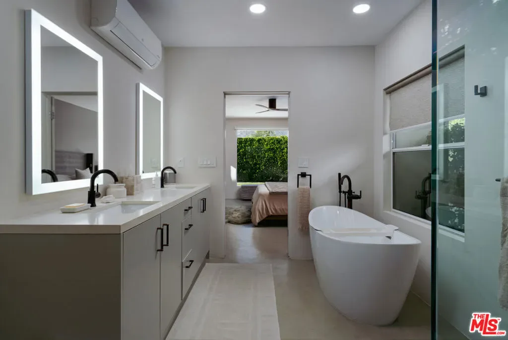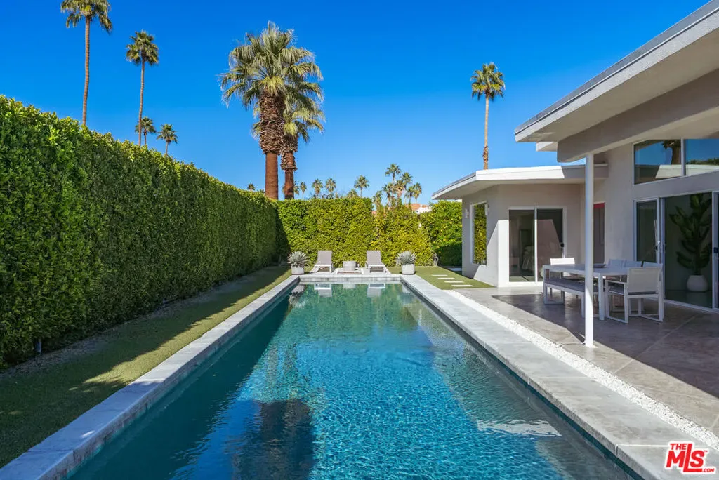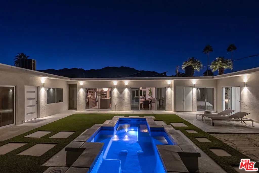 A rare 1949 architectural estate reimagined for modern Palm Springs living, 2280 Paseo Roseta pairs mid-century lineage with energy-efficient contemporary luxury on a grand, private lot in the heart of Sunrise Park. This is a true Palm Springs residence with scale, elegance, and an indoor/outdoor flow designed for effortless desert living, and includes a separate detached casita with full bath and office. Set behind sculptural landscaping and framed by dramatic mountain views, the home unfolds with over 3,200 square feet of refined interiors, wide gallery-like living spaces with walls of glass, warm natural textures, and expansive sightlines that capture the serenity of the pool and gardens. The great room is the soul of the home: sunlit, spacious, and anchored by architectural details that blend 1940s character with today’s design sensibilities. Multiple seating zones, high ceilings, and seamless access to the outdoors make it a true entertainer’s setting. The kitchen is an elevated retreat of its own with generous prep spaces, luxury appliances, custom cabinetry, and an open layout that allows hosting and cooking to coexist effortlessly. Three bedrooms in the main house, with a fourth bedroom in the extra detached casita, each thoughtfully separated for privacy, offer timeless comfort and retreat-like proportions. The primary suite is a sanctuary, with a spa-inspired bath, direct access to the pool terrace, and morning light that feels like a still from a design magazine. Outside, the grounds read like a private resort: a sparkling pool set against mountain silhouettes, private spa, multiple lounging and dining zones, mature palms, and a sense of calm that’s increasingly rare in central Palm Springs. The lot size amplifies the experience with more space, more privacy and more sky. Located moments from downtown, yet tucked into one of Sunrise Park’s most desirable pockets, Paseo Roseta offers the best of Palm Springs living: architectural heritage, modern design, and a luxury-level experience that transcends the typical mid-century category. This is the kind of home people hope to find when they come to Palm Springs…spacious, soulful, stylish, and unforgettable. Upgrades include: upgraded electrical panels and owned solar, high-tech alarm system with cameras and LG Smart home automation. Additionally, this home is eligible to be a short-term rental for supplemental income.