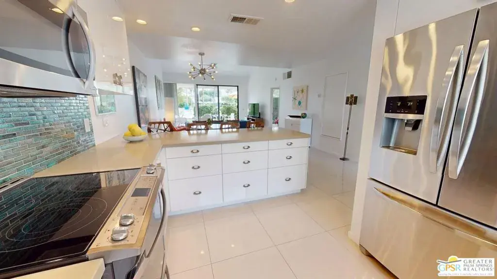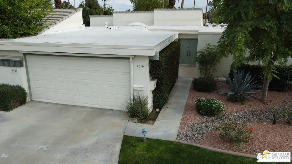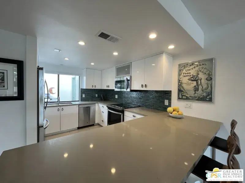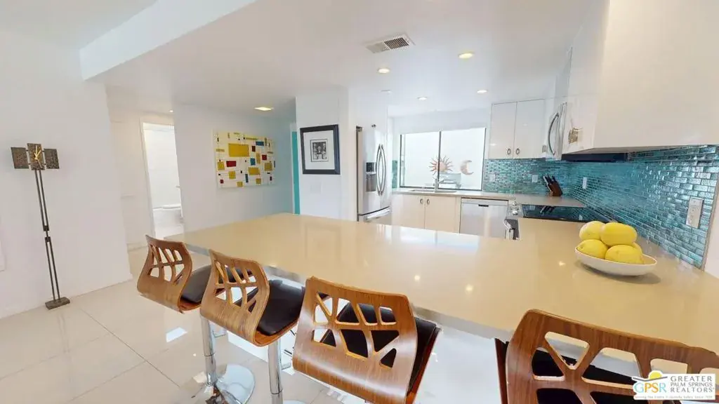Well-located 2 Bedroom 2 Bath residence along the CV Link featuring internet and cable included in the HOA dues. Situated on fee land because owning the home and the land still matters. This place didn’t skip on the upgrades either! Double door entry, through the gated courtyard, is reminiscent of old Hollywood. 24″ square white porcelain tile floors in the main living areas with custom carpeting in both bedrooms. The great room combines living and dining spaces with a sightline that leads straight to one of the community pools beyond the living room patio. Yes–your future backdrop is sunshine and splashing, not drywall. The Primary Suite is a whole mood: custom carpeting, slider access to the south east-facing patio, and great mountain views pointing toward Bob Hope’s iconic Southridge estate. The ensuite bath features dual vanities (no sharing, no fighting) and a sleek step-in shower. The second bedroom is just as thoughtful, with sliders opening to the gated courtyard and direct access to a guest bath illuminated by a skylight because even visitors deserve good lighting. Practical magic includes a laundry room with side-by-side washer and dryer accessed from the courtyard and your own individual parking space in the shared attached garage. Sunrise Villas brings the lifestyle: pools, spas, tennis, and pickleball courts to keep you toned, social, and just competitive enough. All this, conveniently located near shopping, entertainment, and everything fabulous Palm Springs has to offer. Why not make this place your new home? Go on, take the 3D tour. She wants to be seen.