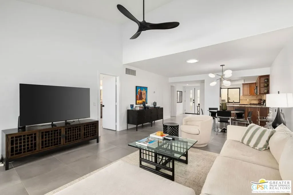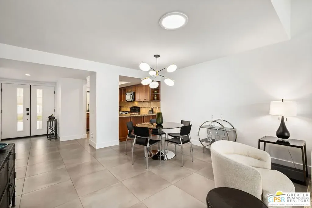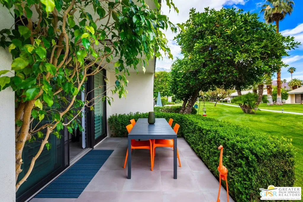 Welcome to the essence of Palm Springs resort-style living, where comfort, elegance, and desert beauty come together in perfect harmony. This stunning 2-bedroom, 2-bathroom condominium is nestled within the highly coveted Sunrise Villas community an oasis known for its lush landscaping, serene atmosphere, and timeless appeal.Enter your private retreat through a charming gated courtyard, an inviting space ideal for morning coffee. As you step through the double front doors, you’re immediately greeted by a sense of warmth, and undeniable pride of ownership, with thoughtful upgrades and refined finishes evident at every turn.The heart of the home is a beautifully re-imagined kitchen, featuring newer appliances, sleek countertops, and an eye-catching designer backsplash perfectly blending style and functionality for both everyday living and entertaining. Both bathrooms have been tastefully renovated with modern showers. Additional enhancements include a newer front door, energy-efficient dual-pane windows and sliders, skylights that bathe the home in natural light, and stunning flooring that flows seamlessly throughout. The expansive great room is truly the centerpiece, highlighted by a soaring vaulted ceiling that creates an airy, open ambiance. The generous living and dining areas are adorned with elegant plantation shutters, offering both style and privacy. Step outside to the spacious patio, accessible from both the living room and the primary suite, where you can unwind, entertain guests, or simply enjoy the peaceful views of the beautifully maintained greenbelts. Practicality meets convenience with a shared attached garage and a separate laundry room, providing storage and functionality. As a resident of Sunrise Villas, you’ll enjoy an array of resort-style amenities, including sparkling pools and spas, tennis courts, and expansive greenbelts that invite leisurely strolls and outdoor enjoyment. The HOA fee thoughtfully includes cable and maintenance of the community’s pristine common areas, allowing for a truly carefree lifestyle.Perfectly situated in the heart of Palm Springs, this home offers easy access to an array of renowned restaurants, boutique shopping, vibrant art galleries, museums, scenic hiking trails, and the picturesque Coachella Valley bike paths. Whether you’re seeking a full-time residence, a seasonal getaway, or an investment opportunity, this exceptional property delivers on every level. Don’t miss this rare opportunity to claim your own slice of desert paradise and experience the unmatched lifestyle that Palm Springs has to offer.