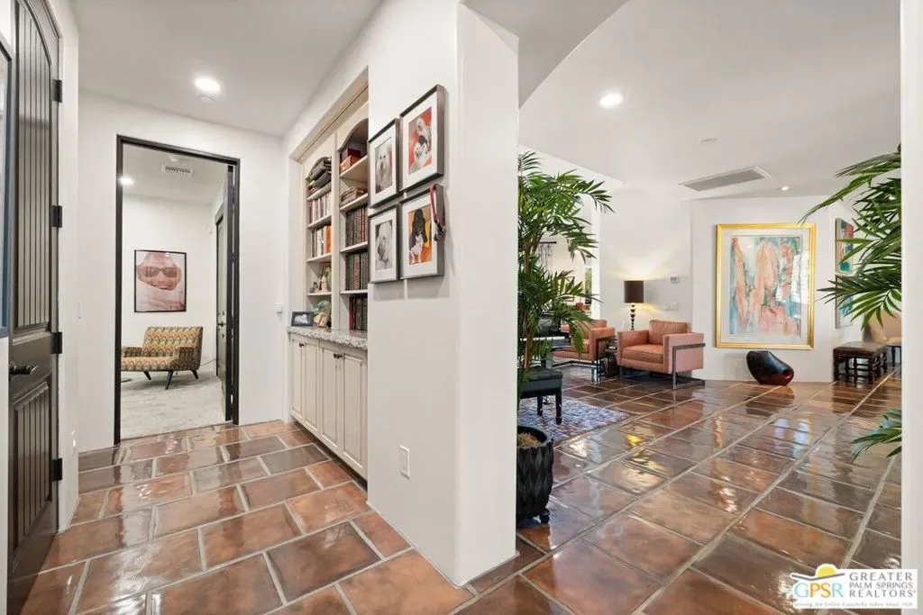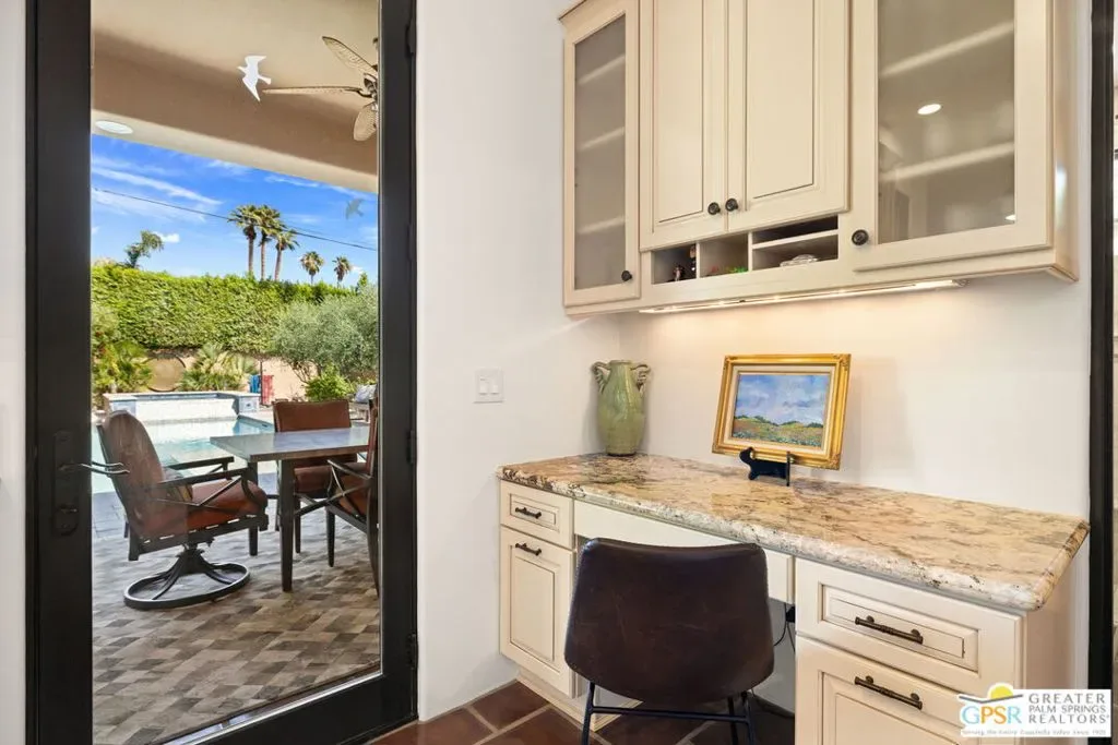 Bold design. Thoughtful execution. Prime South Palm Springs. A standout in both form and function, this 3,313 square foot high efficiency estate offers a rare blend of volume, efficiency, and refined design just blocks from Downtown. Located within Tahquitz River Estates on fee land you own it, the home unfolds with 10-foot ceilings, curated finishes, and a true indoor-outdoor flow that feels both elevated and effortless, anchored by a fully owned 48 panel solar system delivering meaningful energy efficiency and long-term savings. The gourmet kitchen with newly installed appliance suite is a showstopper, featuring a generous prep island, induction cooktop with pot filler, double ovens, built in refrigerator, and rich wood cabinetry, all anchored by a rare 1930s French chandelier casting a warm vintage glow over the dining space. The level of detail throughout is exceptional with heated floors in the primary bath, handcrafted Saltillo tile, solid core doors, fire sprinklers, designer lighting, and custom millwork throughout. Additional systems include dual tankless water heaters, whole home water filtration, central vacuum updated in 2024, whole house sound, and two newly installed HVAC systems. Outside, the private resort setting truly delivers with a glass tiled pool and spa featuring both heating and cooling functions, a rare and highly desirable feature in the desert that keeps the water refreshingly comfortable even during the hottest months. Lush landscaping draws inspiration from the Tuscan countryside with pomegranate and mature olive trees, all enhanced by commercial grade evening lighting. Entertaining comes naturally with a custom pizza oven, built in BBQ, fire pit, and outdoor shower creating an unforgettable setting under the desert sky. Even the garage has been thoughtfully upgraded with epoxy flooring, mini split climate control, overhead storage, and custom cabinetry. All of this just moments from the best of Palm Springs dining, shopping, hiking, and golf, delivering a standout take on the desert good life.