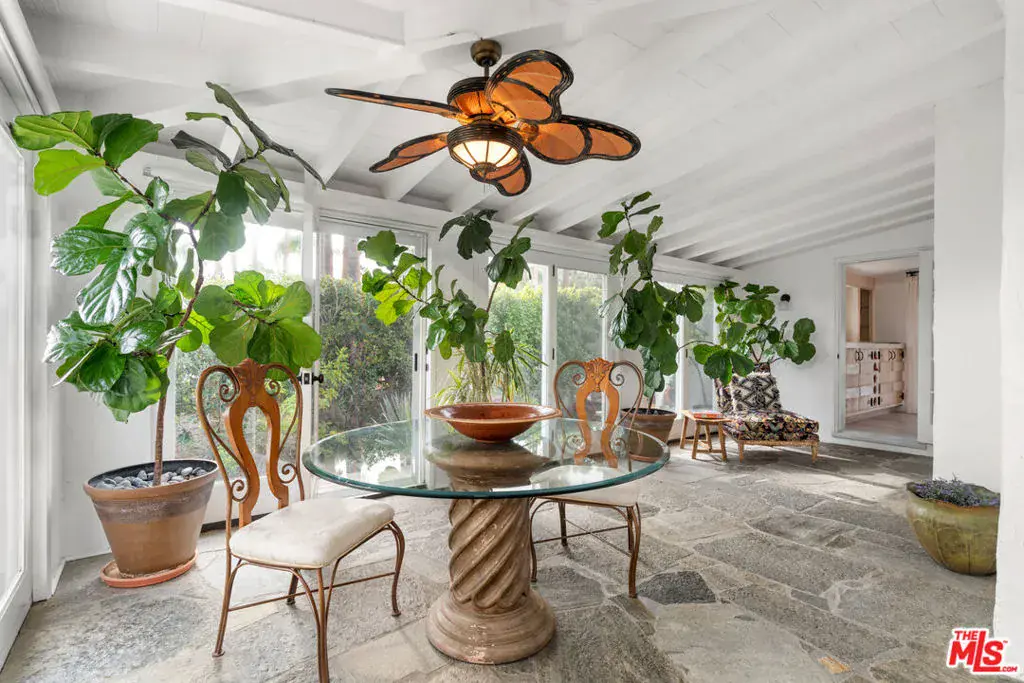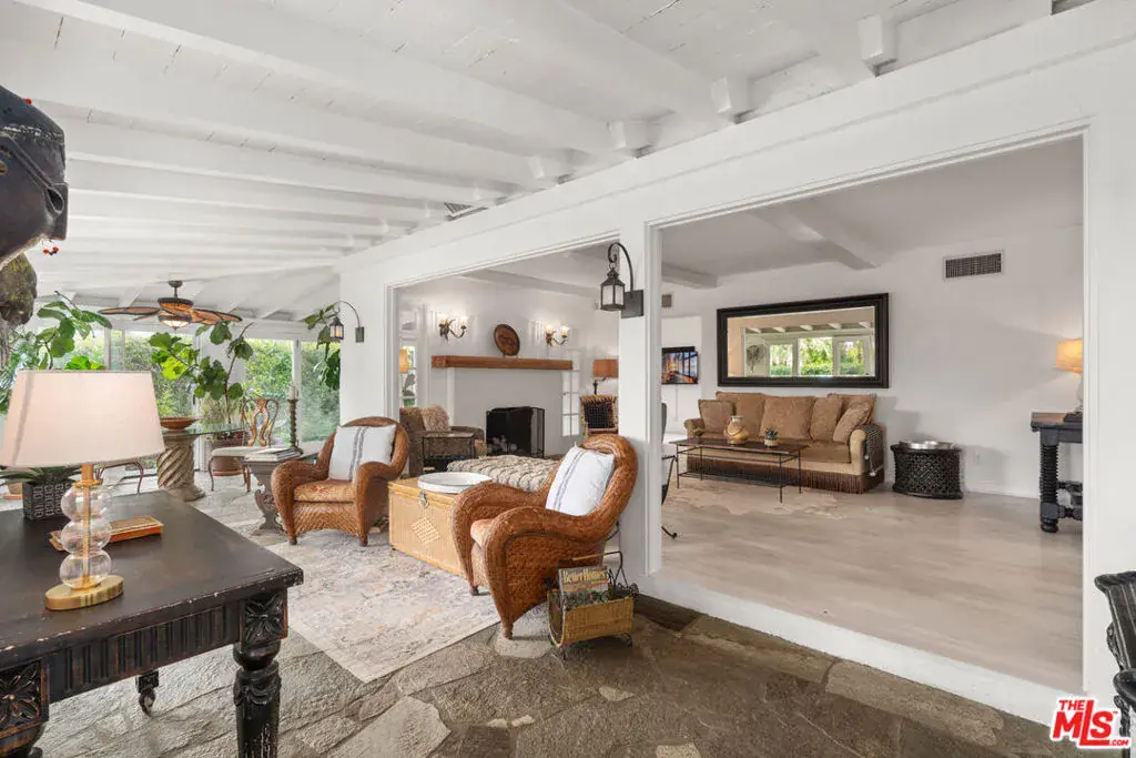 This enchanting circa 1940 Spanish Revival hedged and gated home is sited on a prime 10,000+sf corner lot in the historic Mesa neighborhood of Palm Springs. Surrounded by hillsides of the San Jacinto Mountains, mature landscaping and towering trees, this private architectural retreat features thoughtful hardscaping, beautiful fountains and lush plantings that create multiple inviting outdoor entertaining areas – ideal for al fresco dining, quiet relaxation, or lively gatherings. Spanning over 2,300 square feet, this 3 bedroom & 4 bathroom residence offers an exceptional blend of sophisticated outdoor design and tasteful modern updates. This unique property was used in the filming of the movie, After Dark My Sweet, adding a layer of cinematic history to its timeless character. The expansive eat-in kitchen features a large cooking island, bar seating, concrete countertops, and Spanish backsplash tile; off the kitchen is a cozy lounge with custom tile bar and built-in wine rack. The grand living room is framed by walls of glass and showcases a standout wrap-around enclosed Quartzite stone patio with beamed ceilings, classic fireplace and multiple sitting areas. Graceful arches and abundant natural light enhance the seamless indoor-outdoor transitions. The serene primary bedroom includes beamed ceilings, a tiled fireplace, and French doors that open to the pool area. A spacious bathroom with step-down shower, jetted tub, dual sink vanity and walk-in closet complete the primary suite. The West wing of the house includes two on-suite guest bedrooms that conveniently lead to the private spa and pool area. An impressive Buddha head overlooks the pristine saltwater pool that is complemented by stunning Quartzite stone pool decking, a wet bar with refrigerator, a separate sitting area and elegant dining area. Gated parking for up to 5 vehicles, new 200-amp main electrical panel and other numerous upgrades complete this meticulously maintained property in one of Palm Springs’ most coveted foothill enclaves. Property qualifies for short term vacation rentals with city permit. Buyer to verify short term rental status with city guidelines.