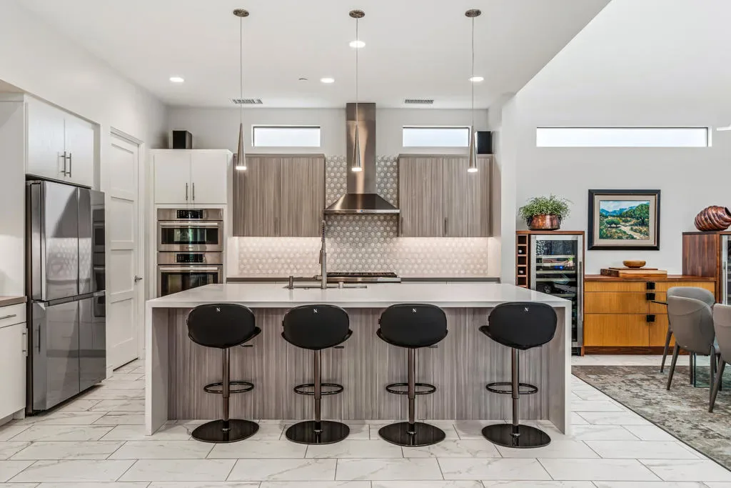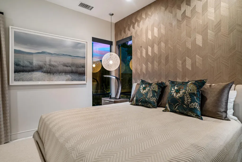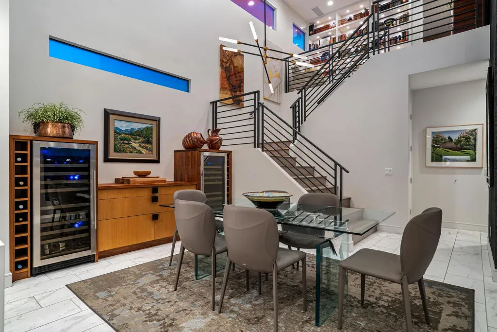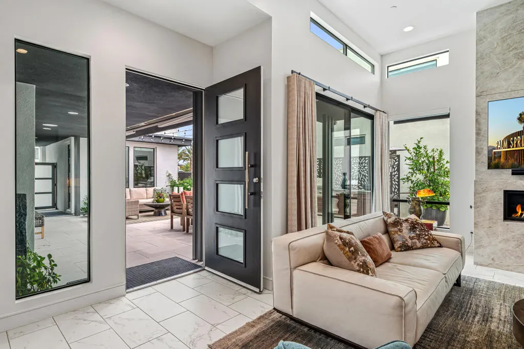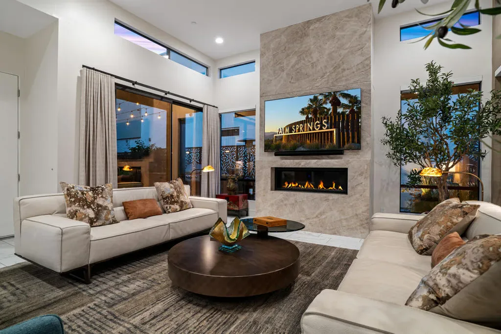 Discover elevated desert living in arguably one of the most upgraded homes in the highly sought-after Vibe Community! Showcasing over $220K in recent enhancements and an impressive collection of designer finishes, this exceptional residence offers 3 bedrooms, 3.5 bathrooms, and is perfectly positioned on one of the largest lots in the community. Step inside to a stunning open-concept great room where soaring ceilings, clerestory windows, and a dramatic Moroccan marble fireplace create a sense of modern elegance. Expansive sliding glass doors seamlessly blur the lines between indoor and outdoor living, perfect for effortless entertaining. The chef’s kitchen is nothing short of spectacular, featuring quartz countertops, an oversized island, upgraded appliance package including a Wolf cooktop, and a spacious walk-in pantry. The adjacent dining area is designed to impress, complete with dual built-in wine refrigerators and a custom buffet, ideal for hosting unforgettable gatherings. The main-level primary suite is a private sanctuary, offering dual walk-in closets and a spa-inspired bathroom with full tile surround and a luxurious walk-in rain shower. Upstairs, you’ll find custom wood plank flooring, illuminated built-in shelving, an airy loft space ideal for a home office or lounge, and a beautifully appointed guest ensuite. A detached casita provides a third private guest retreat with its own entrance and direct courtyard access – perfect for visitors or extended stays. The upgrades continue outdoors with a true entertainer’s backyard: Italian tile patio, custom outdoor kitchen with gas grill and pellet smoker, retractable awnings, a built-in firepit, and newly designed raised garden beds. Additional highlights include 42 owned solar panels, whole-home water filtration, and a temperature-controlled garage with a sleek frosted glass door. Residents of the Vibe enjoy resort-style amenities including a heated pool and spa, expansive sun deck, clubhouse with outdoor grill, two dog parks, EV charging stations, and bocce ball courts. This is a rare opportunity to own a one-of-a-kind showpiece that perfectly captures the essence of luxury, lifestyle, and Palm Springs living.