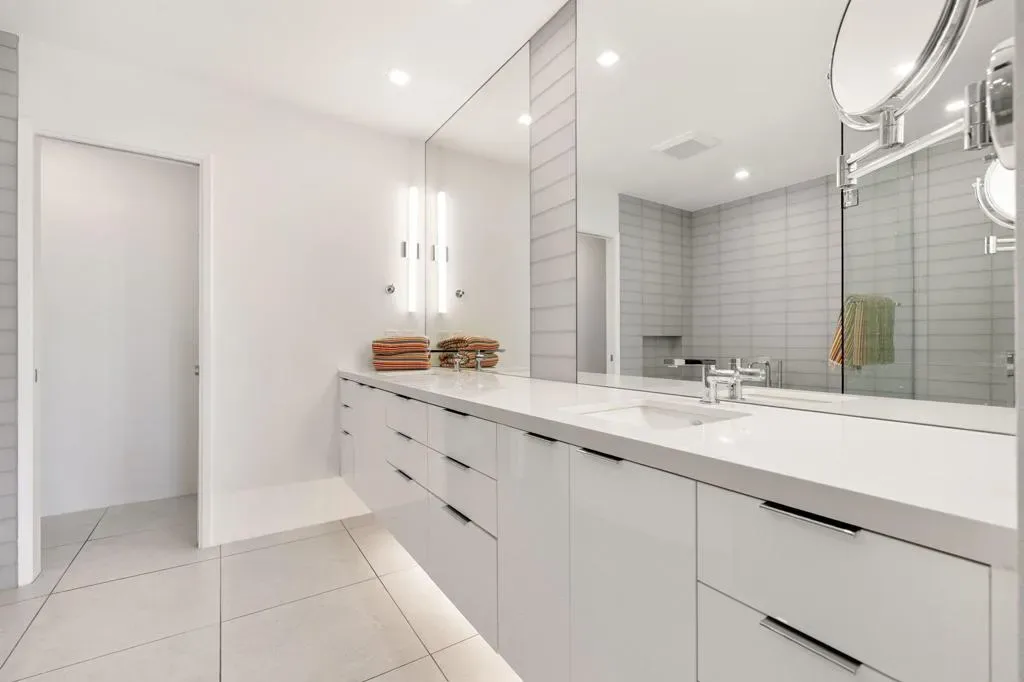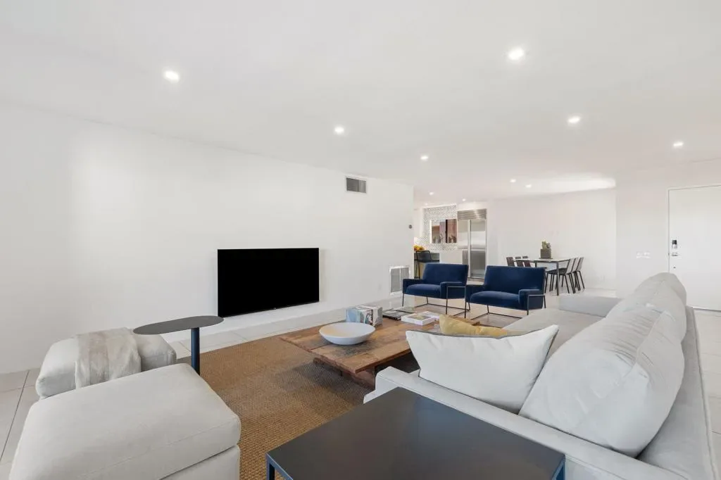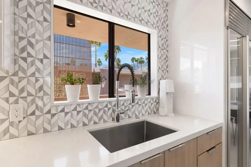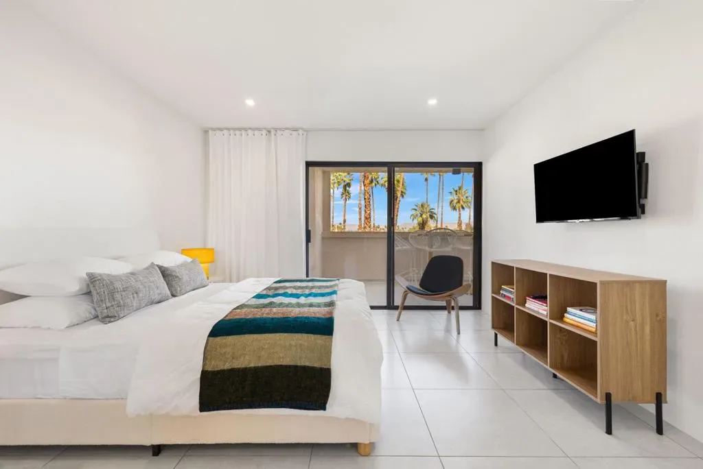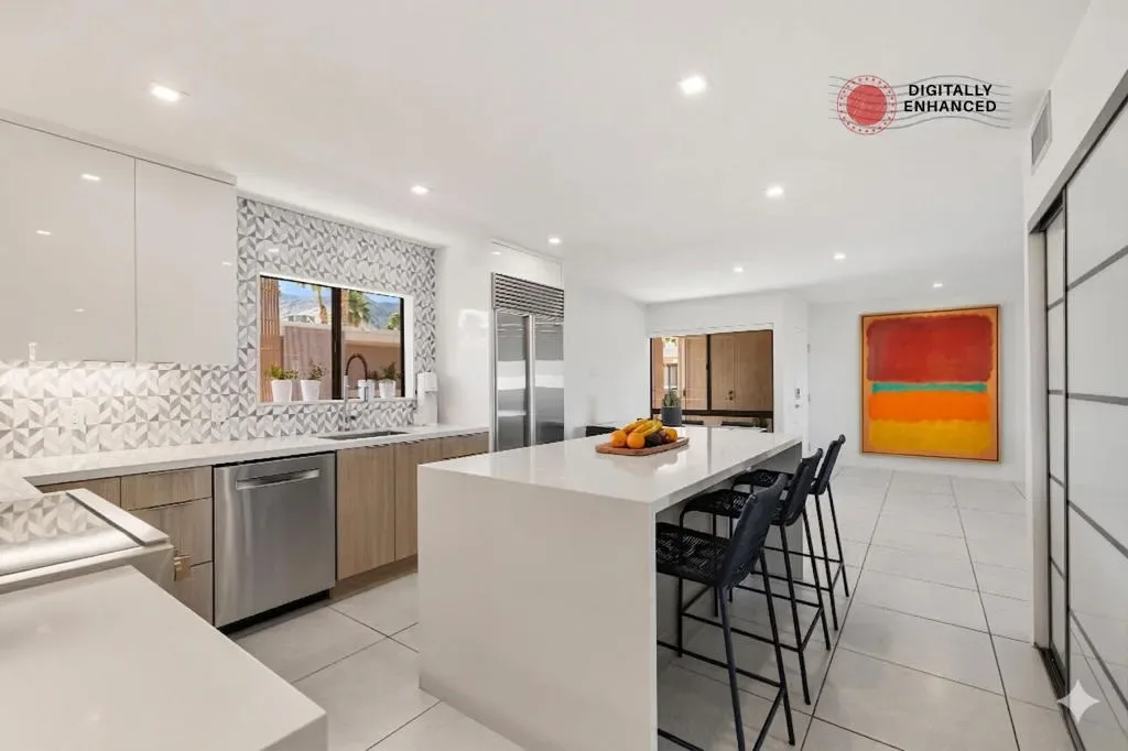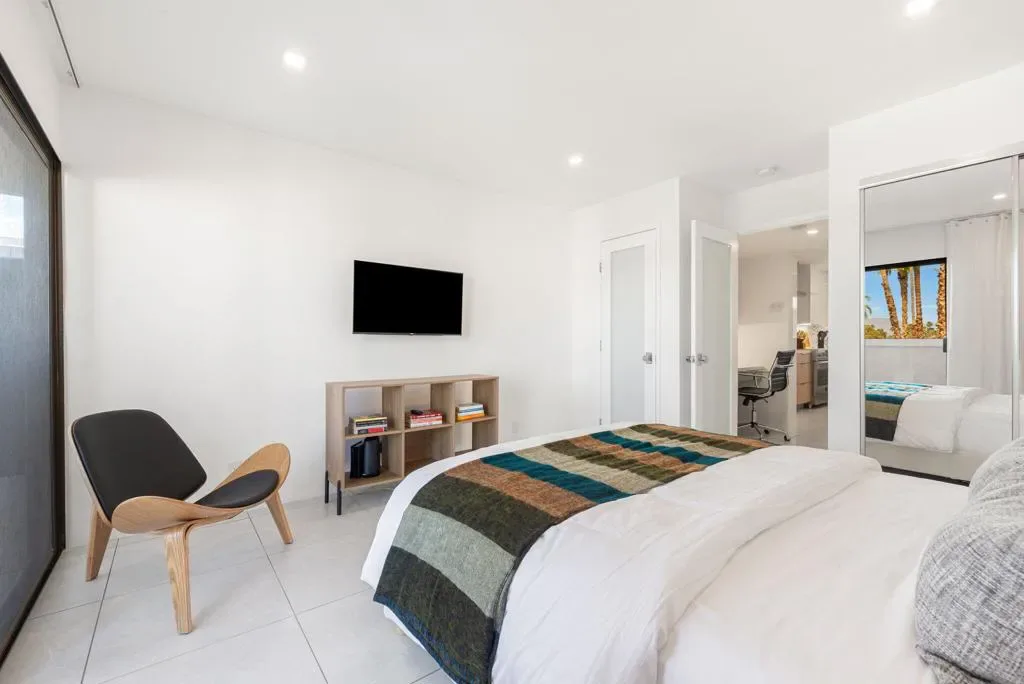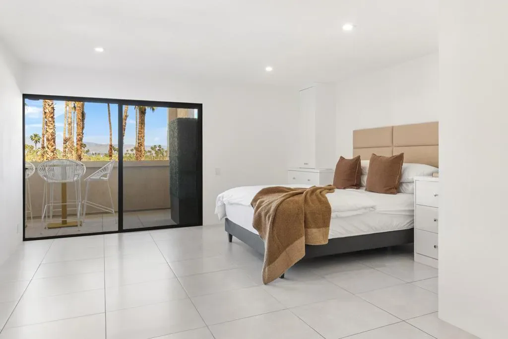 Vaulting mounts surround our beautiful valley. The Santa Rosas to the southwest, San Jacinto to our west, and the Little San Bernardinos to the north are like a movie screen. Light and shadow dance upon them through the day. With our flat valley and ubiquitous ‘patio homes,’ it’s rare for a condominium to come to market that offers a bird’s-eye view of any of these incredible mountain ranges. By rising just one flight of stairs, you shift perspective. The world unfolds below you. Distance through glass becomes your artwork. Privacy is a given. This is what 2696 S. Sierra Madre Unit F14 offers in a clean, contemporary envelope. Designed amidst a park-like setting with streams, bridges, pools, and ball courts by famed architect Don Wexler, Twin Springs is an ”it” development few even know exists. So unique, it was included in the 2025 Modernism Week under the title ”Hidden Gem.” Within Wexler’s vernacular, Twin Springs is bold. Sagewood, to the north, consists of common, one-story homes. The Rose Garden in Central Palm Springs includes townhouses. And then there is Twin Springs, with upper- and lower-level homes that feel as right today as they did in 1973 when new. In fact, this home has been so thoroughly updated to meet today’s lifestyle that it’s safe to say it’s an improvement over the original. A modern, open kitchen incorporates the dining and living areas in a clean, white palette. Wine storage, a pantry, and an induction stove round out a suite of state-of-the-art appliances that complement any chef. A built-in workstation neatly tucked into an alcove makes dedicated desk work easy. Hidden in-unit laundry is a must-have for any modern home. The complex includes tennis courts, pickleball courts, a clubhouse with dry saunas in the men’s and women’s rooms, two pools, and two spas. From the long, wide balcony, you look upon the enchanting grounds, including the one-of-a-kind geometric pool composed of hexagonal segments. To the left rise the San Jacinto range, and in the distance, the mesmerizing Little San Bernardinos and endless sky. Who wouldn’t want to call this paradise home?