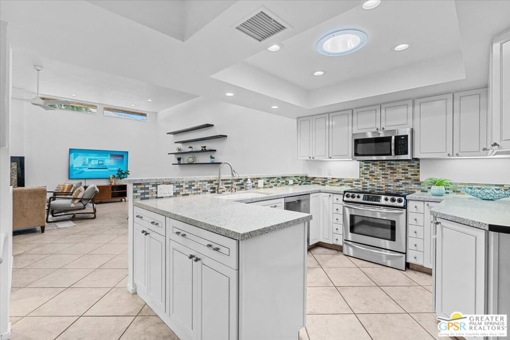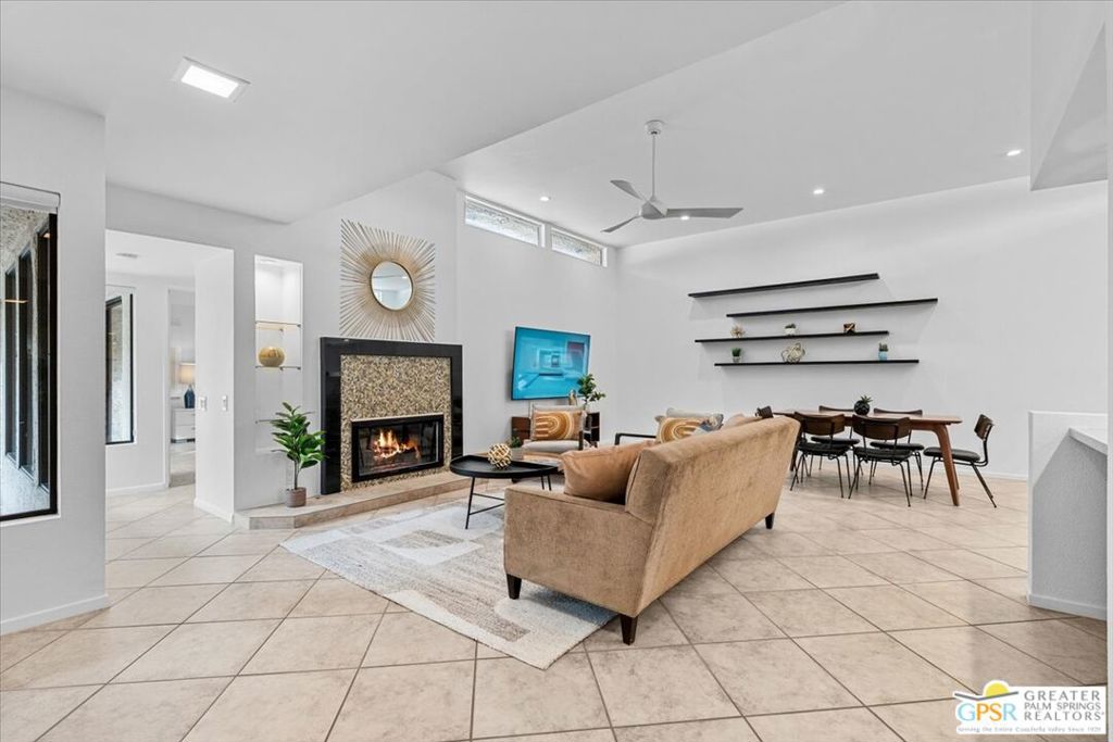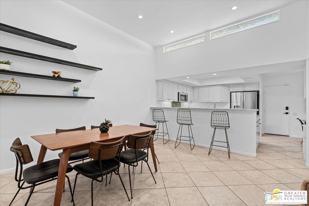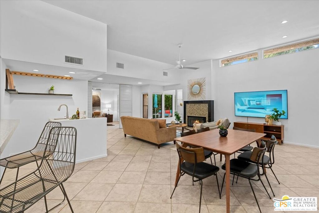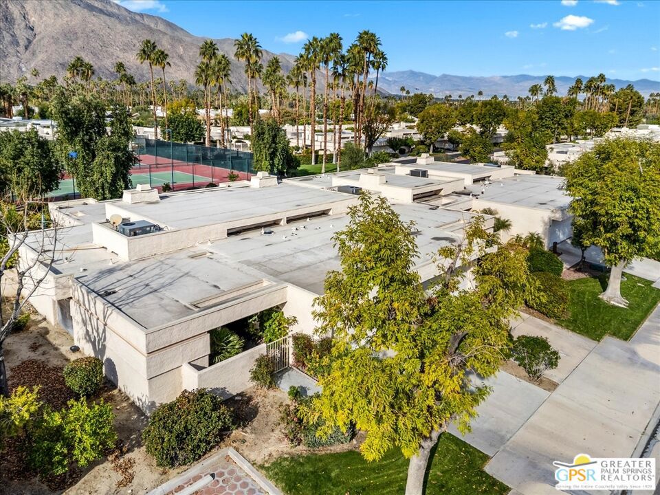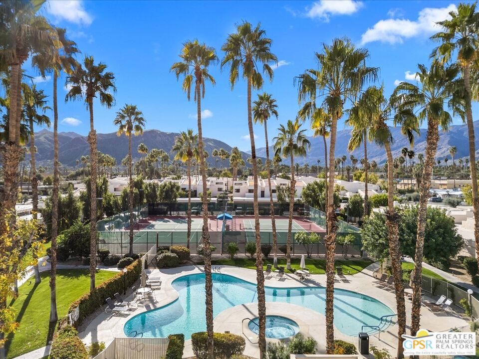 Enjoy your morning coffee or a leisurely lunch from your private landscaped patio, while taking in mountain views from this South Palm Springs villa-style residence in the highly sought after Versailles community in Palm Springs. Step through lush gardens filled with fruit trees to the community tennis courts and a choice of multiple resort-style pools and spa. This home offers the perfect blend of relaxation, recreation, and convenience. Designed with comfort and flexibility in mind, this spacious 2-bedroom, 2-bath home includes a separate den with a Murphy bed and closet ideal as a guest space, office, or potential third sleeping area. With nearly 1,900 square feet of living space, the thoughtful floor plan provides excellent bedroom separation and lives more like a private villa than a typical condo. The kitchen and family room feature vaulted ceilings, abundant natural light, and an open-concept layout well suited for both everyday living and entertaining. Off a kitchen that includes like new appliances you will find a separate breakfast area and wet bar that add functionality and charm, creating an inviting atmosphere throughout the home. Enjoy true lock-and-leave living with property management handling exterior landscaping, pool, and spa care making travel effortless and worry-free. Additional highlights include a two-car attached garage with laundry and a highly walkable location near the Purple Room, Smoke Tree Plaza (Ralph’s, Ace Hardware, Post Office, and restaurants) and Smoke Tree Commons ( Jenson’s, World Market, TJ Max, Petco & Walgreens). Just two residential streets from the CVTrail providing an easy and safe bike ride into downtown or for the more ambitious all the way to Indio. Experience the best of South Palm Springs living in a home that balances space, style, convenience, and resort amenities.