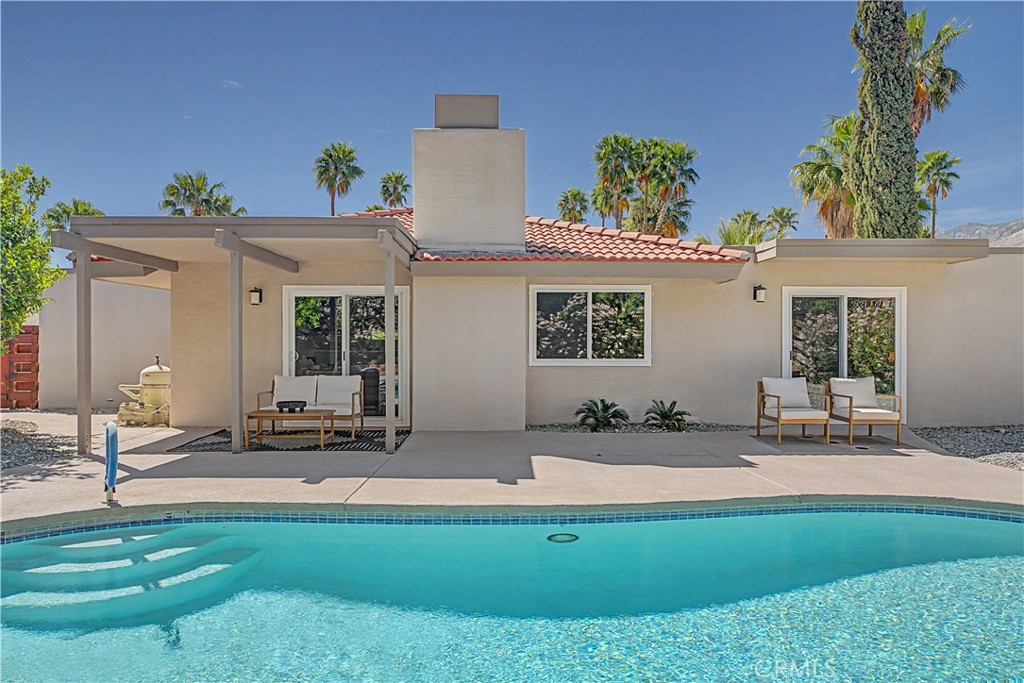 The primary suite comfortably fits a king bed and offers direct access to the backyard and pool, creating a seamless indoor-outdoor connection. Two additional bedrooms share a central bathroom, offering flexibility for guests, a home office, or additional living needs. Dual-pane windows and sliders enhance efficiency and natural light throughout. Located in a short-term rental-friendly area just minutes from downtown Palm Springs, this home is ideal as a full-time residence, weekend getaway, or investment opportunity.