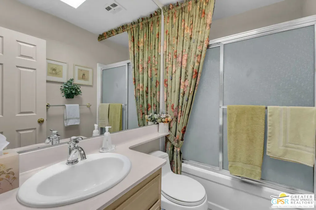 Spectacular west facing mountain and golf course views set the stage for this charming South Palm Springs condominium, originally designed as the community’s model home and offering unique features not typically found in other units. Set on land you own (no land lease), this beautifully maintained 2 bedroom, 2 bath residence features a warm country cottage aesthetic with a cozy gas fireplace, inviting living spaces, large windows that frame the stunning scenery, and a recently updated HVAC system for added comfort and efficiency. Outdoor living is a true highlight of this home. The front patio captures the spectacular mountain and golf course views and offers plenty of space for outdoor dining, relaxing, and enjoying Palm Springs’ famous sunsets. In addition, a separate and private back patio features higher walls than other units along with a convenient side gate, creating a peaceful and functional outdoor space. A rare bonus feature is the concrete block storage shed, large enough for bicycles, golf gear, and pool floats, making it easy to enjoy the active desert lifestyle. Additional guest parking nearby adds convenience, another benefit of this home’s original placement as the model. The community offers resort style amenities including multiple pools and spas, tennis courts, pickleball courts, and beautifully maintained grounds. Ideally located in South Palm Springs, the property is just minutes from world class golf, hiking trails, dining, shopping, and the vibrant downtown Palm Springs scene. A rare opportunity to own a uniquely positioned former model home with exceptional mountain views in one of Palm Springs’ most desirable locations. Schedule your private showing today.