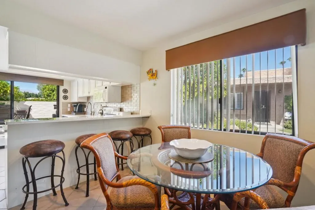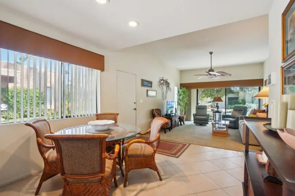 Welcome to Villas De Las Flores, where resort-style living meets the ultimate South Palm Springs lifestyle. This stylish 2-bedroom, 2-bath condo offers a rare opportunity to enjoy both comfort and low-maintenance living in one of the desert’s most desirable locations. Thoughtfully updated, the residence features quartz counters, stainless steel appliances, and a light-filled interior designed for effortless comfort. Step outside to your own private patio and take in beautiful western mountain views while overlooking the sparkling community pool–perfect for morning coffee or evening relaxation. The seamless indoor-outdoor flow enhances the desert lifestyle, making entertaining or quiet retreat equally enjoyable. Villas De Las Flores residents enjoy an array of amenities, including 11 pools, 2 spas, 2 tennis courts, 8 pickleball courts, a fitness room, and a shared library. With low monthly HOA dues of $520, this community provides both value and convenience. HOA’s include water, trash, and earthquake insurance. Fantastic South Palm Springs location places you just minutes from shopping, dining, golf, hiking trails, and the vibrant downtown scene. Best of all, this condo sits on fee simple land–you own the land, adding long-term value and peace of mind.