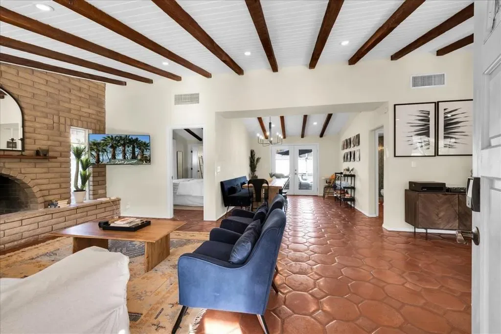 Stunning 1938 Spanish-Style Home in Warm Sands. Welcome to this beautifully preserved five-bedroom, four-bathroom Spanish-style residence located in the highly desirable Warm Sands neighborhood of Palm Springs. Blending timeless 1938 character with thoughtful modern upgrades, this fully gated property offers approximately 2,115 square feet of living space with breathtaking views of the San Jacinto Mountains. Inside, the home showcases classic Saltillo tile floors, vaulted and pitched ceilings, and charming brick accents, all centered around the original 1938 fireplace in the spacious living area. The updated open-concept kitchen and beautifully renovated bathrooms provide modern comfort while preserving the home’s historic charm. The flexible floor plan includes five bedrooms, including a private attached casita with its own entrance and ensuite bathroom, ideal for guests, extended family, or additional rental income. Step outside to a resort-style backyard designed for relaxation and entertaining. Enjoy a Pebble-Tec saltwater pool and spa, multiple lounge areas, a fire pit, and a gas grill surrounded by mature landscaping and stunning mountain views. Conveniently located just minutes from the heart of Palm Springs, this home provides easy access to world-class dining, boutique shopping, art galleries, and scenic hiking trails. With excellent short-term rental returns and an active STR permit, this property presents a rare opportunity for both lifestyle and investment.Additional Highlights: Fully gated private property, Smart home features including keyless entry and smart thermostats, Tesla wall charger, Multiple outdoor seating and entertaining areas, Active short-term rental (STR) permit with strong rental history and future bookingsLocated in Warm Sands, which is currently under the STR permit cap. Whether you’re seeking a primary residence, luxury vacation home, or high-performing investment property, this exceptional home delivers the perfect blend of historic Palm Springs charm, modern comfort, and resort-style living.Contact us today for additional information or to schedule a private showing!