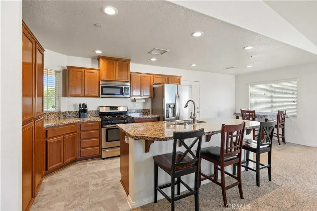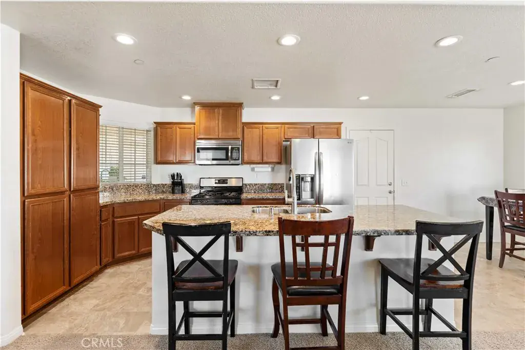 Welcome To An Absolutely Immaculate Well Maintained Home With A Nicely Laid Out Open Floor Plan!! Stunning Kitchen With Stainless-Steel Appliances Surrounded With Granite Countertops, Lots of Excellent Cabinetry For All Your Storage Needs and Room Enough For A Dining Area. Center Island Features Dual Stainless-Steel Sinks, Breakfast Bar That Opens To A large Family Room And Cozy Fireplace. Spacious Bedrooms, Primary Bedroom Includes Full Bathroom With Spacious Oval Tub And Separate Walk-In Shower, Good Sized Laundry Room, Roomy Two Car Garage, Owned Solar – NO LEASE PAYMENTS – Just LOW SCE Bills, And Much More…Must See To Appreciate!!!