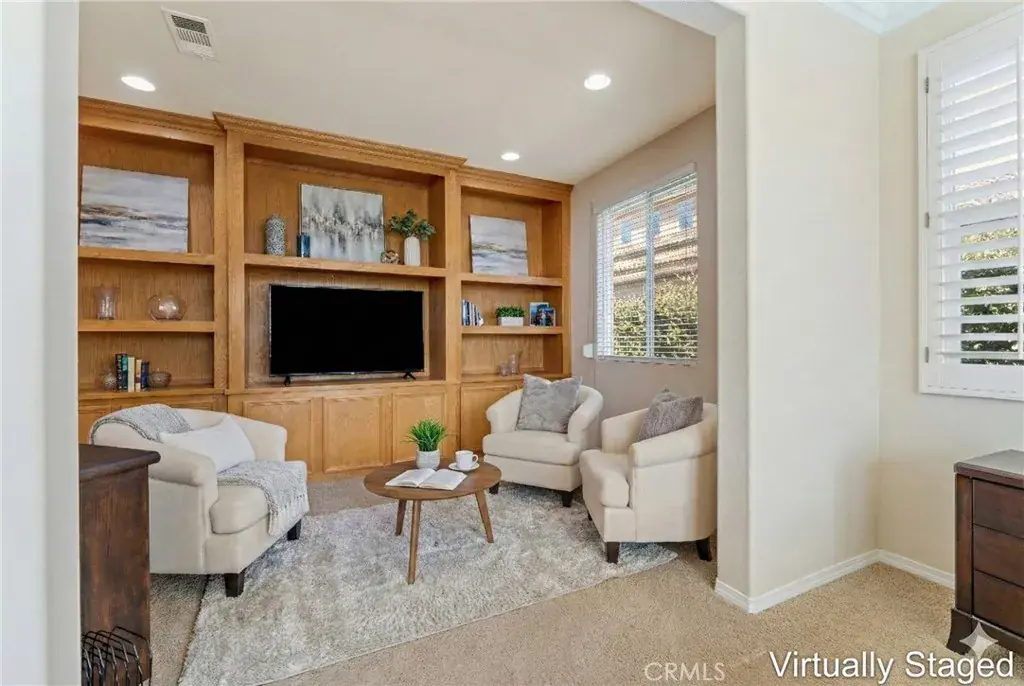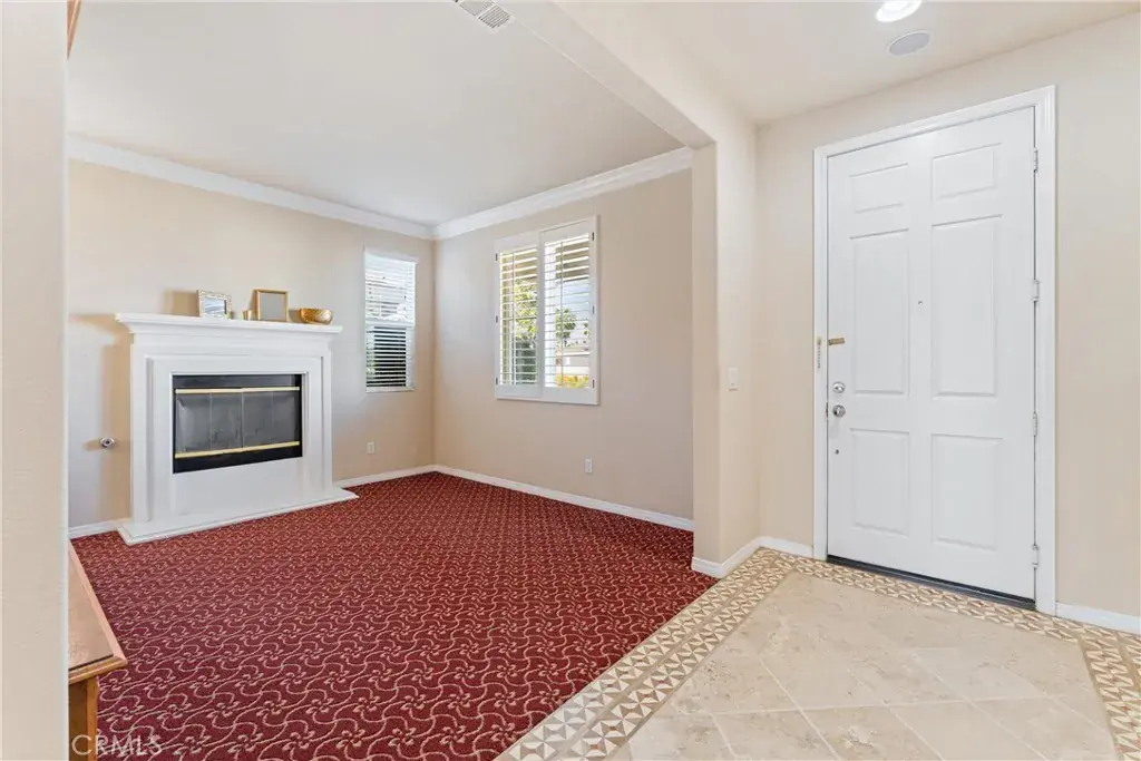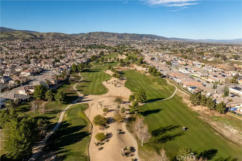 Experience luxury golf course living at its finest in Rancho Vista. This stunning former model home is perfectly situated in the prestigious Palmdale West community. This expansive single-story residence features three oversized bedrooms, three bathrooms, and a versatile bonus room that can easily be converted into a fourth or even a fifth bedroom. From the elegant travertine-tiled foyer to the designer wood ceilings in the formal dining room, every detail exudes sophistication. The home includes rich wood flooring and three separate fireplaces for unparalleled ambiance. The gourmet chef’s kitchen is equipped with a massive central island, a butler’s pantry, and double ovens. The primary suite serves as a true sanctuary, featuring its own fireplace, a retreat area with custom built-ins, and a spa-like bath with a soaking tub and walk-in shower. Key upgrades include a newer AC condenser, gutters, and custom aluminum exterior security shutters for golf ball protection. A three-car tandem garage provides ample space for vehicles or a workshop.