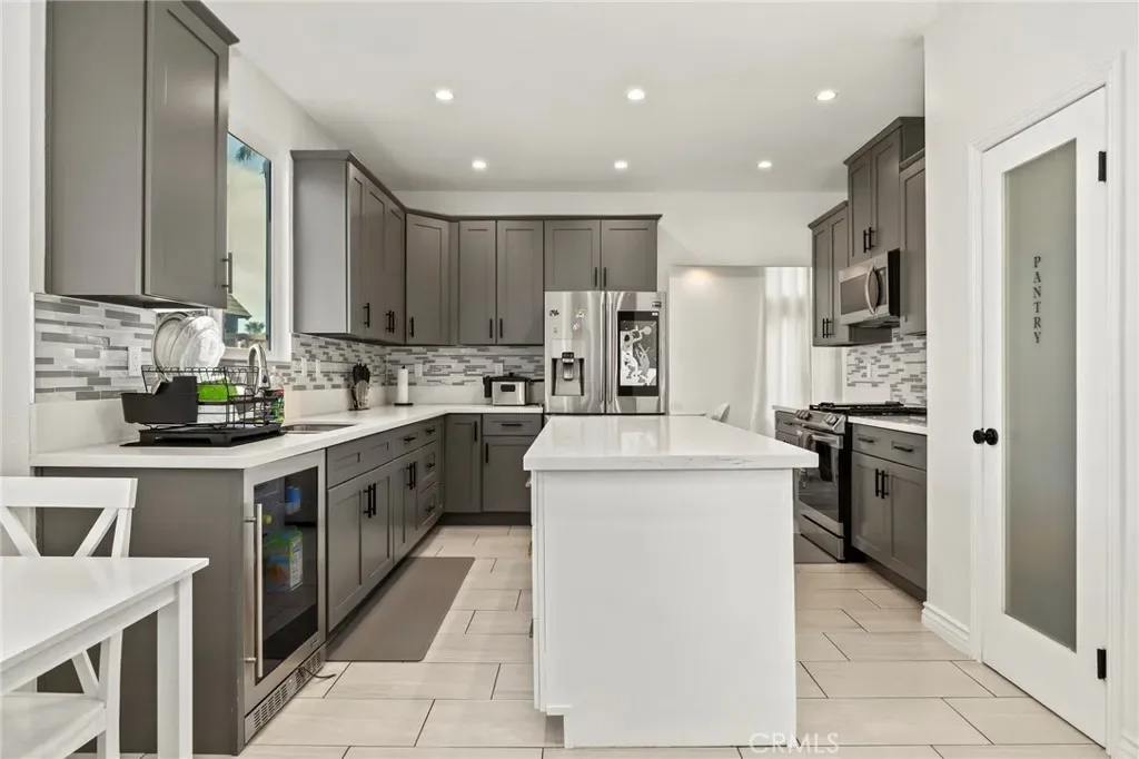 Come inside to find brand new gray rustic-style laminate flooring throughout the living room, stairs, hallways, and bedrooms, along with custom porcelain tile flooring in the kitchen, bathrooms, and laundry area. The completely renovated kitchen features brand new custom cabinetry, elegant quartz stone countertops, a new garbage disposal, and a modern pull-out faucet.