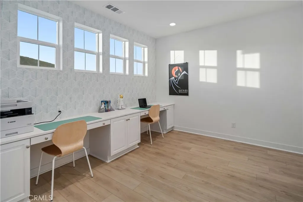 Inside, refined upgrades reflect thoughtful design and quality craftsmanship. Features include upgraded appliances, a full LED lighting package, custom cabinetry in the living room and study, upgraded flooring, premium countertops, and designer tile finishes. Additional enhancements such as pendant lighting, a pot filler, custom closets, and shutters throughout complete the polished interior aesthetic.