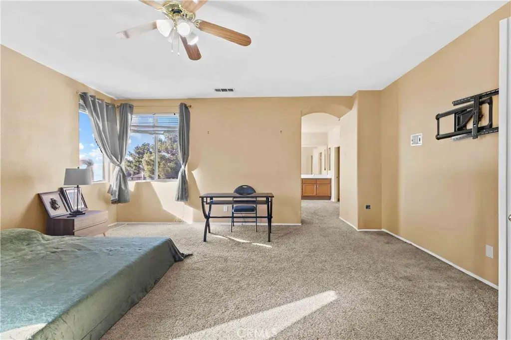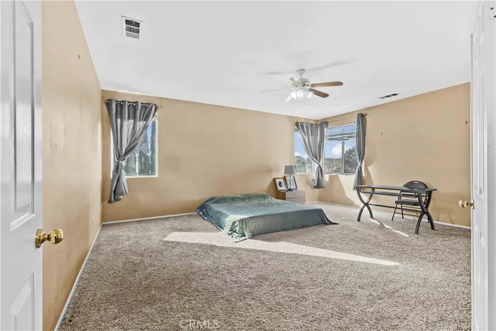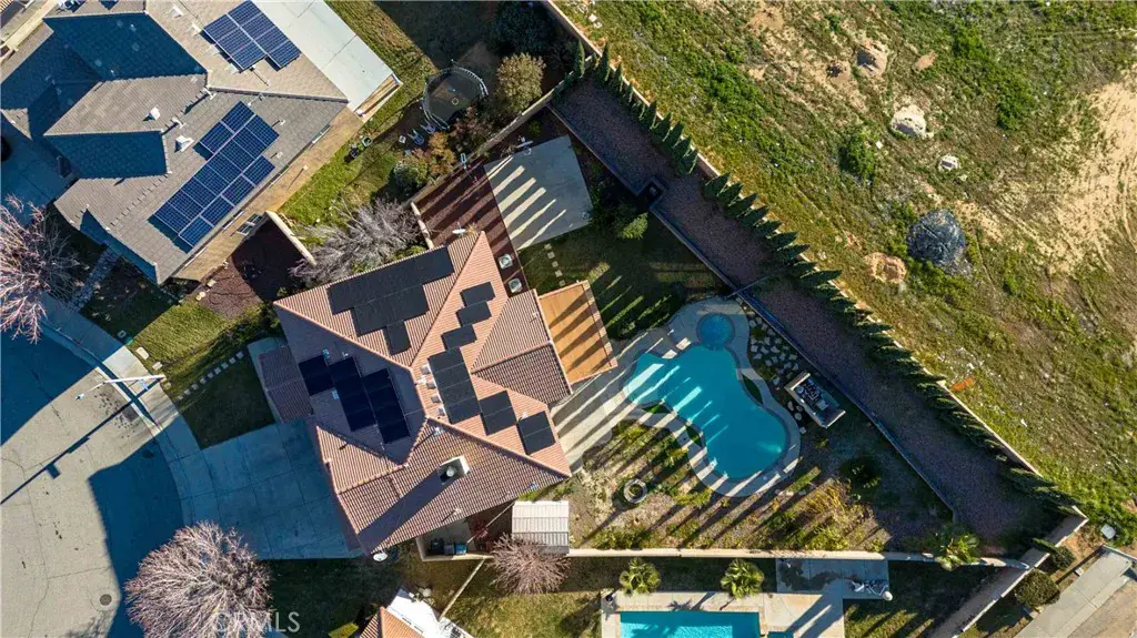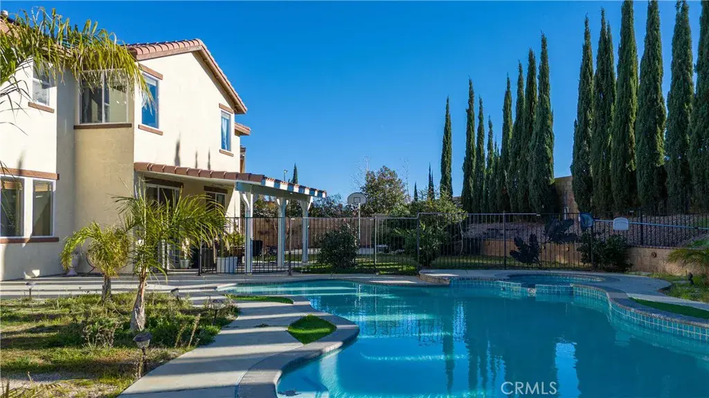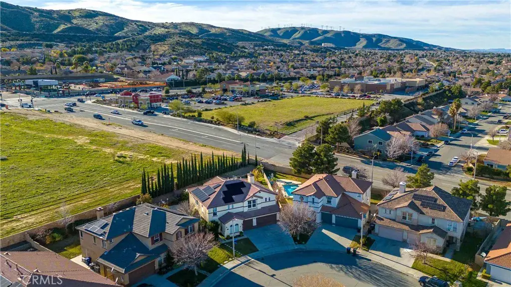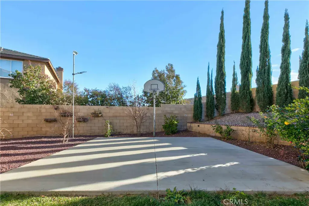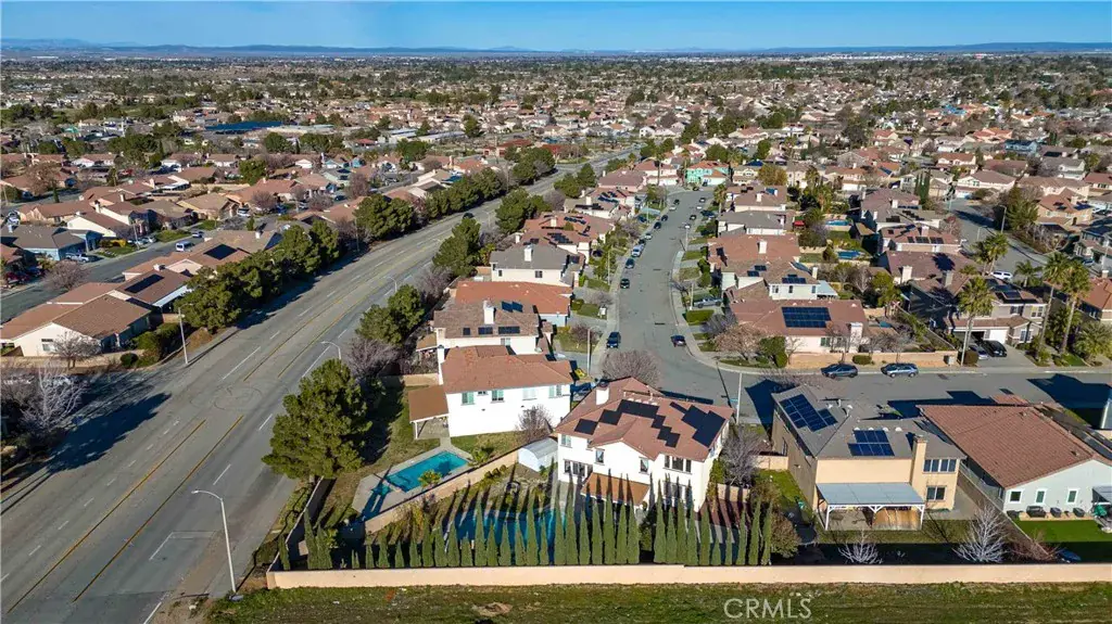 Located in the desirable Rancho Vista community of West Palmdale, this beautiful 5-bedroom, 3-bath home offers 3,256 sq ft of living space on an expansive 11,817 sq ft lot. The bright entry opens to a formal living and dining area with soaring ceilings and abundant natural light. The well-designed floor plan includes a downstairs bedroom and full bath perfect for guests or multi-generational living. The spacious kitchen offers ample cabinetry and opens to a large family room with a fireplace, overlooking the backyard and pool. Upstairs features four generously sized bedrooms, including a primary suite with dual walk-in closets and a primary bath with a soaking tub, separate shower, dual sinks, and a dedicated makeup/dressing area. The entertainer’s backyard includes a pool and spa, covered patio, fire pit, garden area, and basketball court. Solar panels provide energy efficiency, and the home is conveniently located near the Antelope Valley Mall, shopping, dining, parks, and Rancho Vista Golf Club—making this a rare opportunity in one of West Palmdale’s most sought-after communities.