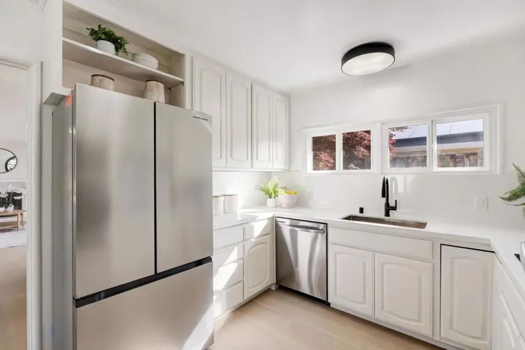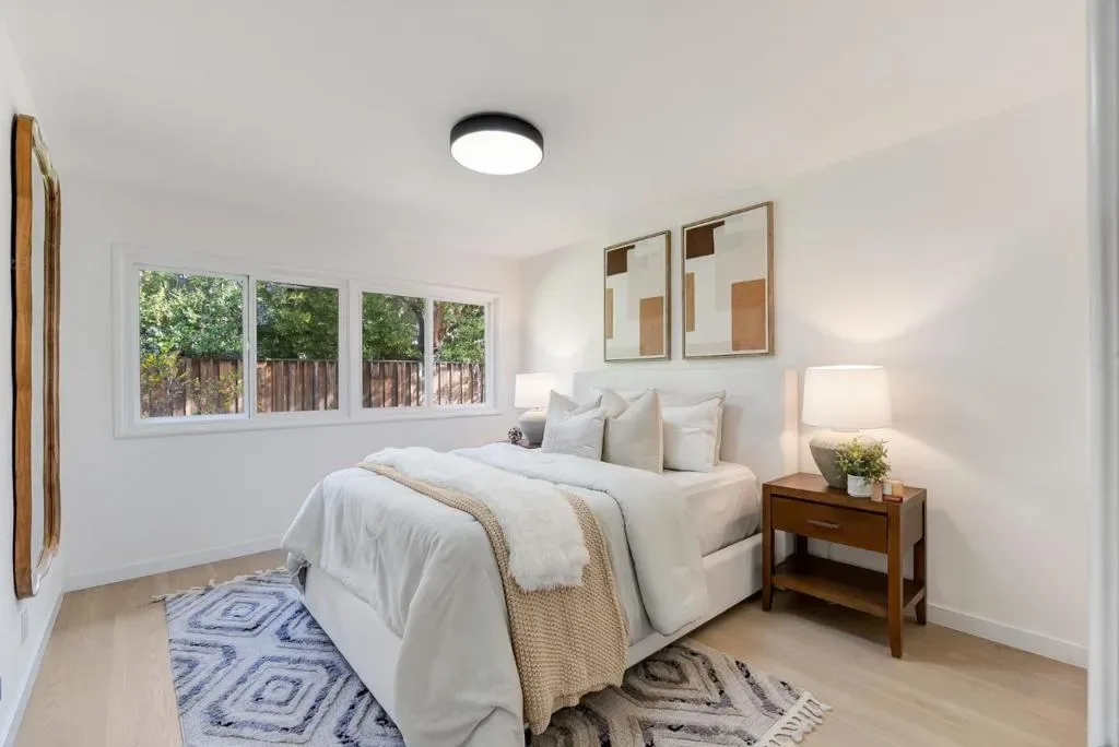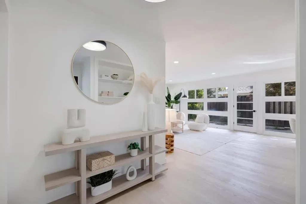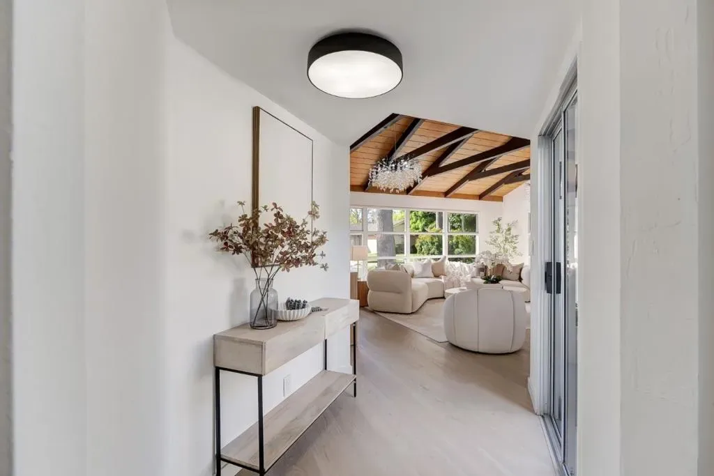 A just-completed whole-home update reimagines this Green Gables home with a fresh, cohesive style and excellent livability. The single-level floor plan has 3 bedrooms and 2 baths plus a spacious family room in addition to the formal living and dining room combination. New luxury vinyl plank flooring extends throughout, complemented by all new lighting, freshly painted interiors, and abundant natural light from updated and oversized windows. The remodeled eat-in kitchen features quartz counters and new appliances, and both bathrooms, including one en suite, have been refreshed with updated surfaces. A fireplace highlights the living/dining room as well as the family room. The wraparound yard offers expansive hardscape and lawn in a private setting, ideal for entertaining and play. The attached 2-car garage has new epoxy flooring. This outstanding location is just blocks from Rinconada Park and the library 1.5 miles to Stanford University and downtown Palo Alto, and has access to acclaimed Palo Alto schools.