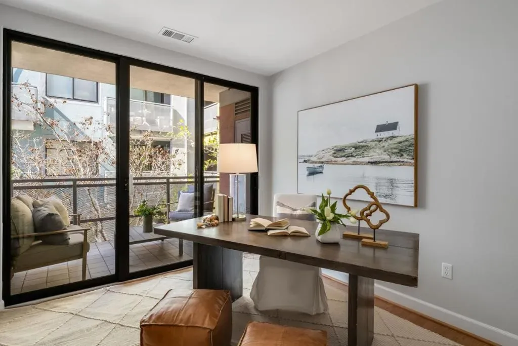 Defining contemporary urban living with unmistakable Silicon Valley panache, this rare 3BR/2BA corner sanctuary with a dedicated office/den occupies a premier Downtown Palo Alto setting. Meticulously architected and impeccably appointed, approximately 1,638 SF of light-filled living unfolds beneath soaring 10-foot ceilings, offering the scale, flow, and comfort of a single-family home. Beyond the formal entry, a grand great room presents expansive living and dining areas framed by oversized windows and anchored by a refined fireplace. The seamlessly integrated kitchen features rich cherry cabinetry, timeless stone countertops, and premium Viking stainless-steel appliances. A versatile office/den with custom built-ins opens to a private outdoor terrace overlooking the tranquil interior courtyard. The luxurious primary suite offers a generous walk-in closet and spa-inspired bath, complemented by two additional bedrooms, a hall bath, and a full-size laundry closet. Set within a secure, elevator-served building offering two parking spaces and a private storage closet, the residence is moments from University Avenue, world-renowned dining, boutique shopping, Whole Foods, parks, transit, and top-rated Palo Alto schools.