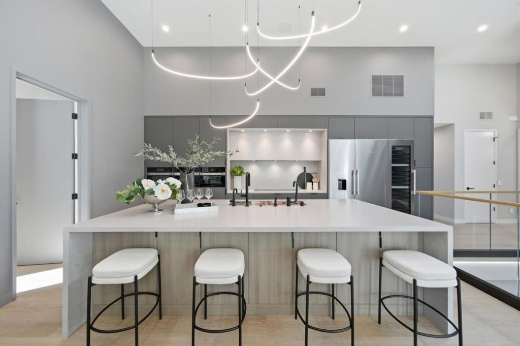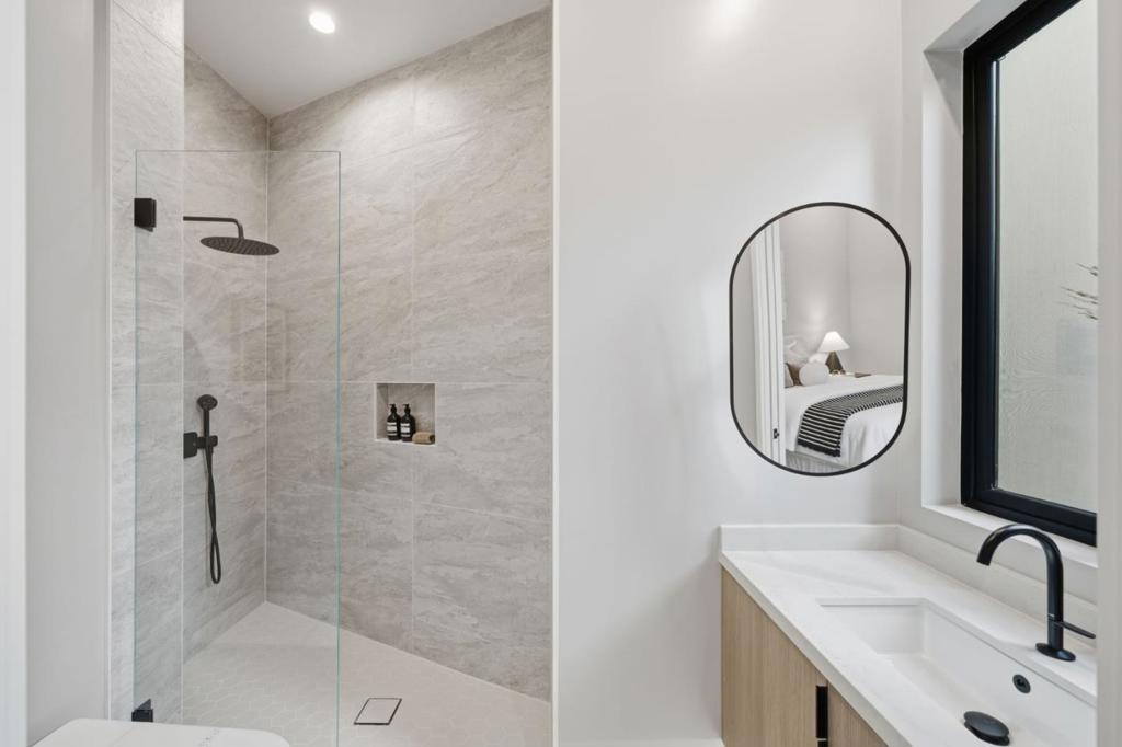 An architectural masterpiece, this stunning modern estate offers 5,213 sq ft of refined living space on an expansive 9,100+ sq ft lot, located in a peaceful, well-connected neighborhood with a strong sense of community. Soaring 15-foot ceilings and walls of glass fill the home with natural light, creating an open and airy feel throughout. The thoughtfully designed floor plan features 5 spacious bedrooms, ideal for multi-generational living, offering privacy and flexibility for adults, grandparents, and children. Designed for both everyday living and entertaining, the home includes a dual-kitchen concept with a wet kitchen and a dry kitchen. Resort-style amenities feature a private sauna and theater room. The designer kitchen showcases Miele appliances, sleek cabinetry, and premium finishes. The low-maintenance landscaped backyard provides a serene retreat, complemented by smart home technology, energy-efficient features, and solar panels. Ideally located near top-rated schools including Palo Alto High School, as well as dining and shopping. A rare offering of quality, design, and location.