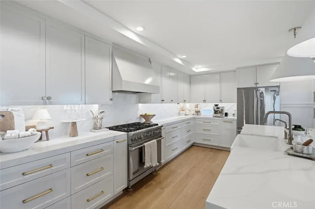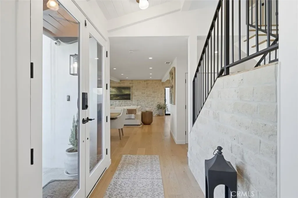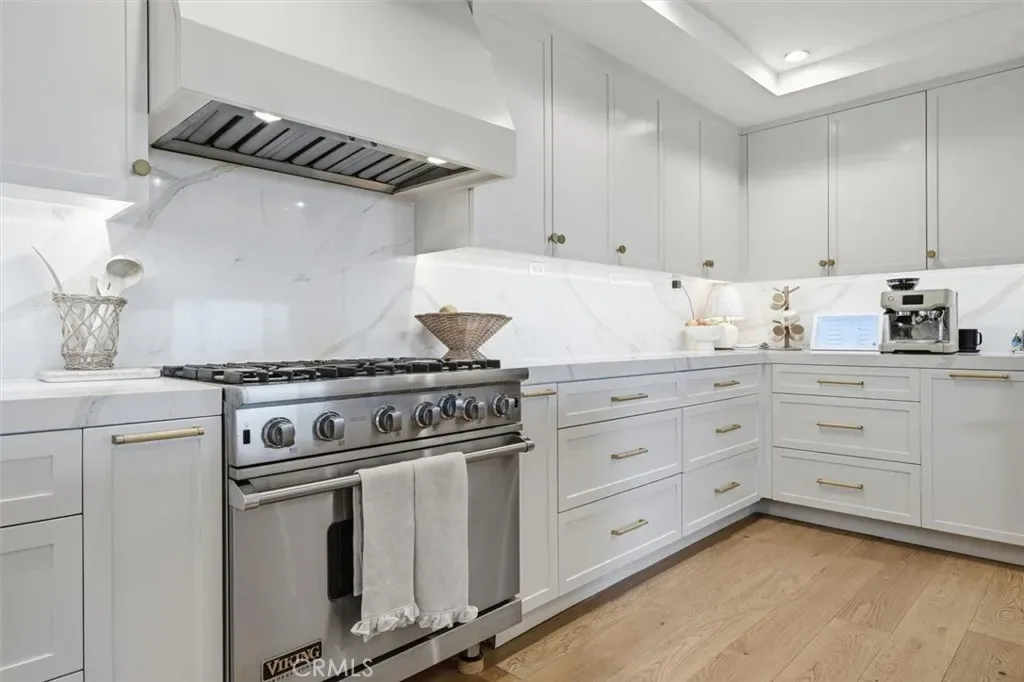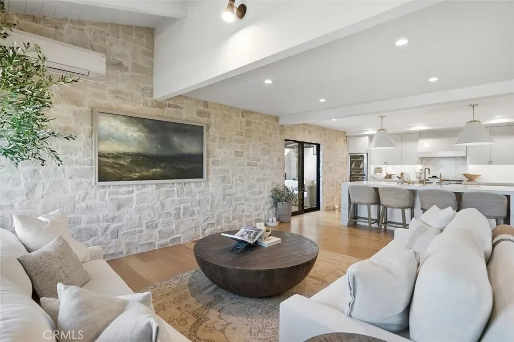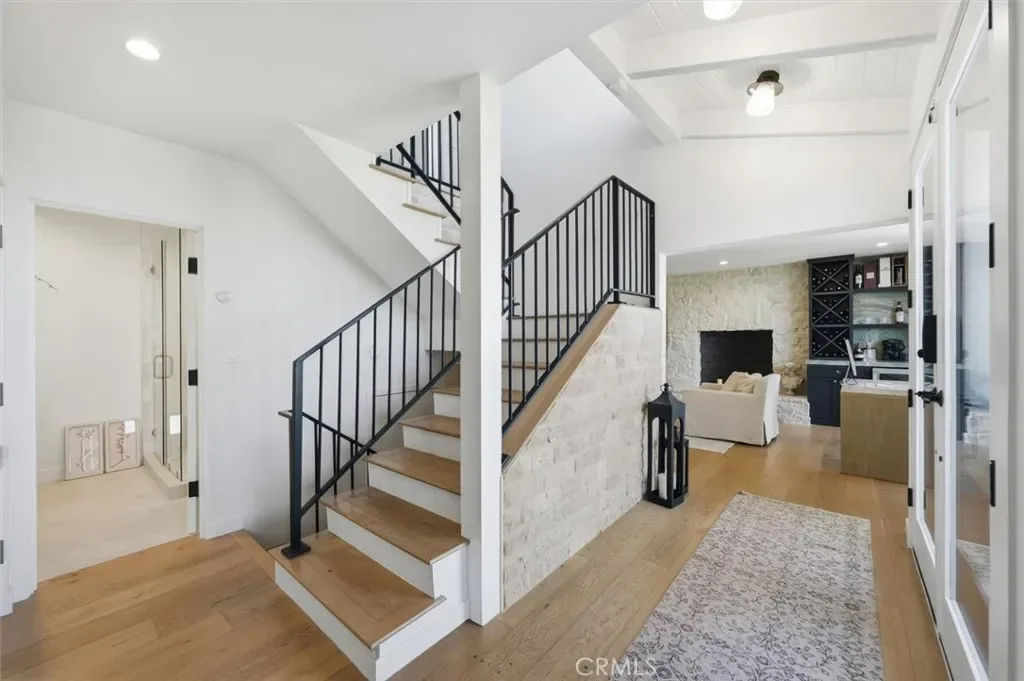 Inside, sophisticated design and comfort come together with rich hardwood floors, dramatic Italian marble stone steps, abundant natural light, and a striking stone fireplace anchoring the living space. The designer chef’s kitchen is appointed with premium Viking appliances, sleek quartz countertops, custom cabinetry, a 100+ bottle built-in wine refrigerator, beverage fridge, and dedicated wine storage—ideal for everyday living and effortless entertaining.