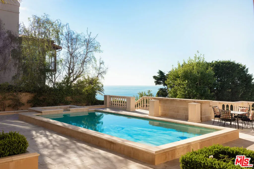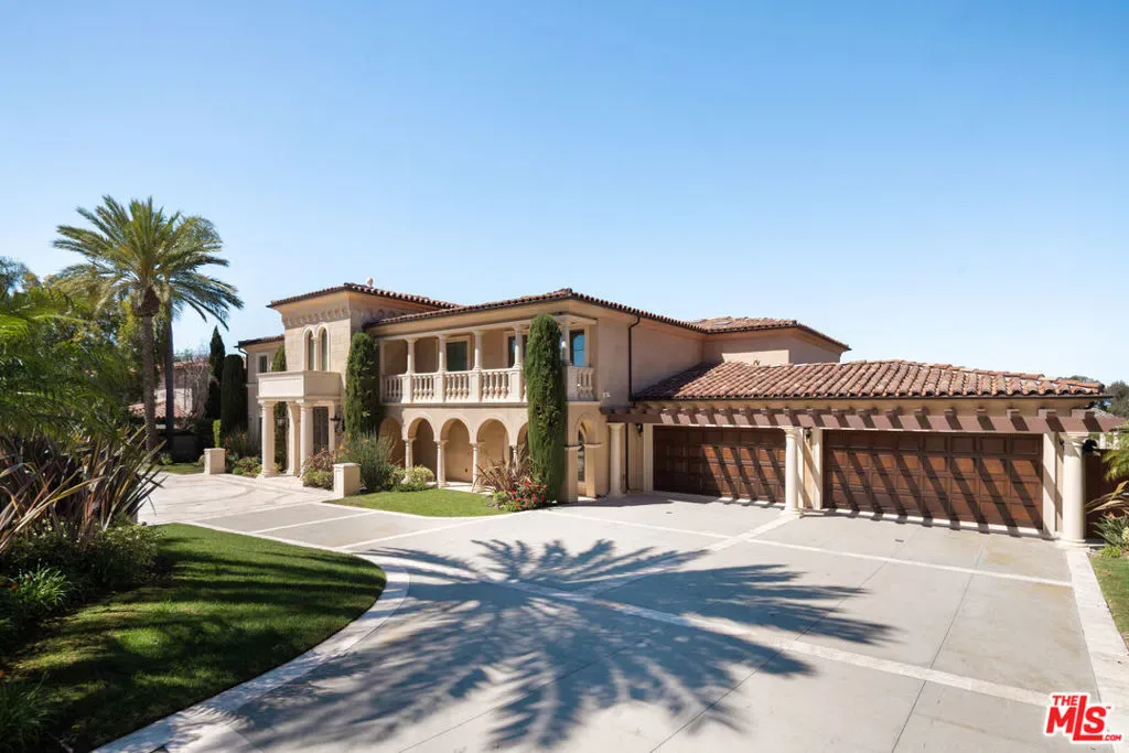 Set on an expansive lot with sweeping ocean vistas, this impressive estate offers approximately 8,600 sq. ft. of living space. Designed for both comfort and entertaining, the home showcases an open-concept layout and a resort-style backyard complete with a pool, spa, BBQ area, multiple patios and balconies, level lawn space, and a private tennis court.A grand entry with a dual staircase welcomes you inside, leading to a refined office/library with custom built-ins, formal living and dining rooms, a versatile bonus room, and a spacious kitchen equipped with granite countertops, a Sub-Zero refrigerator, and a large center island. The adjoining family room features a striking fireplace, a wet bar, and French doors that open to a generous balcony. Nearly every main living space is positioned to capture the stunning ocean views. The primary suite offers a private retreat with its own fireplace, scenic views, balcony access, and a luxurious bathroom featuring a soaking tub and steam shower. Throughout the home, you’ll find elegant details such as travertine and wood flooring, soaring ceilings, wainscoting, and French doors. The lower level includes a charming wine room with a tasting area and lounge space, perfect for intimate gatherings. Additional highlights include a four-car garage and a circular driveway for added convenience and curb appeal.