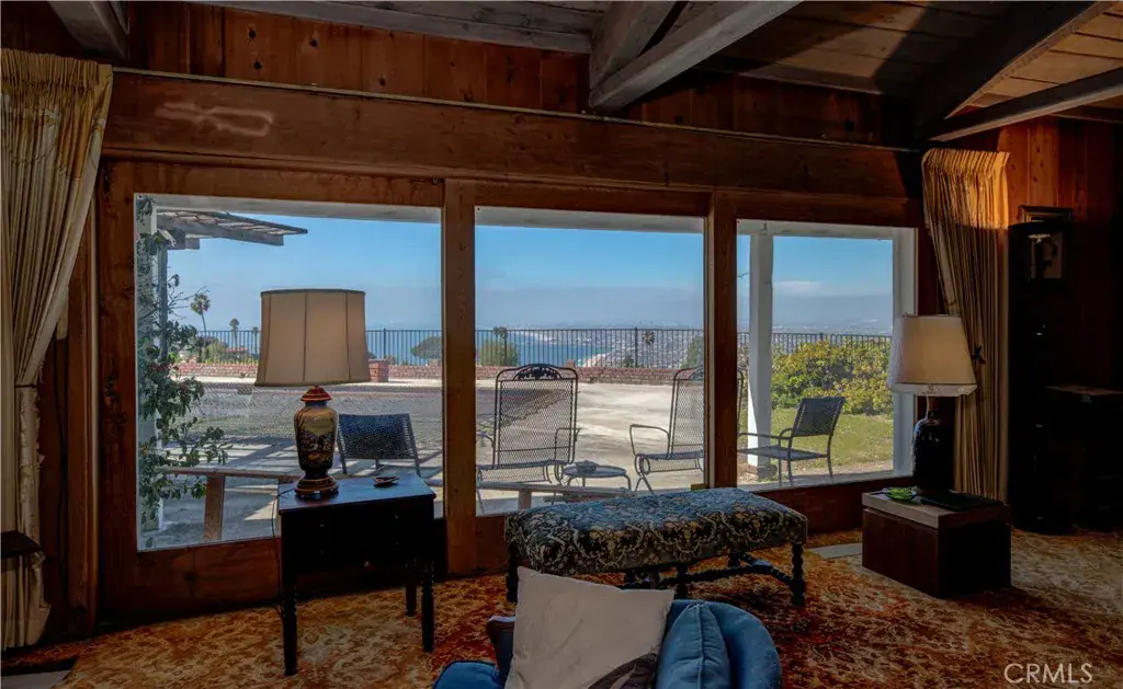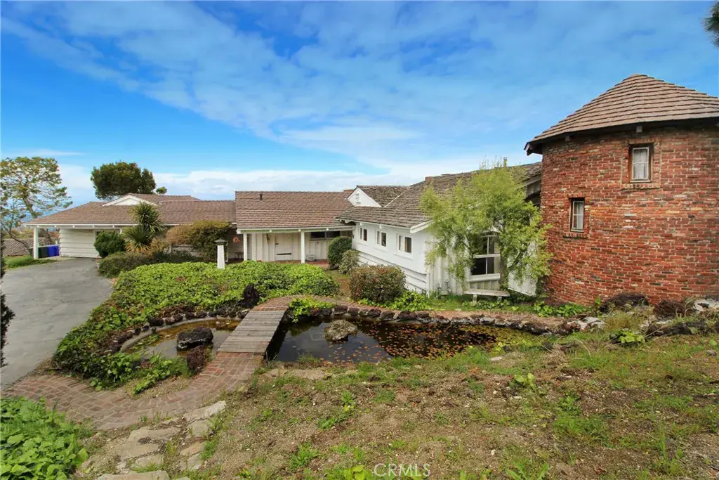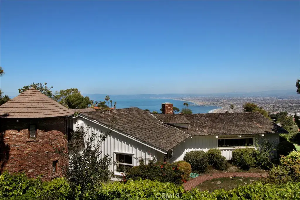 Perched at the end of a quiet cul-de-sac in one of Palos Verdes Estates’ most desirable hillside settings, this custom-built single-story residence is situated on an exceptionally large lot of over 65,000 square feet (approx. 1.5 acres). The property offers expansive, unobstructed panoramic views encompassing the Queen’s Necklace, downtown Los Angeles skyline, SoFi Stadium, the coastline from Redondo Beach toward Malibu, and extending east to Long Beach with mountains beyond. The existing ranch-style home features thoughtful brick and wood craftsmanship throughout and includes a spacious living room, a distinctive round brick tower room, three bedrooms plus a versatile walkthrough room suitable for a variety of uses, three bathrooms, a split-level office or den overlooking a wet bar, two dining areas, and a separate bonus or entertainment room. Outdoor amenities include a pool, built-in grill, and patio designed to take full advantage of the remarkable views. A large circular driveway provides ample parking and leads to a three-car garage with additional workspace. The size and configuration of the lot offer flexibility for future expansion or potential new construction, subject to city approval. Conveniently located near award-winning Palos Verdes schools, Malaga Cove, coastal access, and with easy connectivity to the greater Los Angeles area, this property presents a rare opportunity to own a private view estate in Palos Verdes Estates.