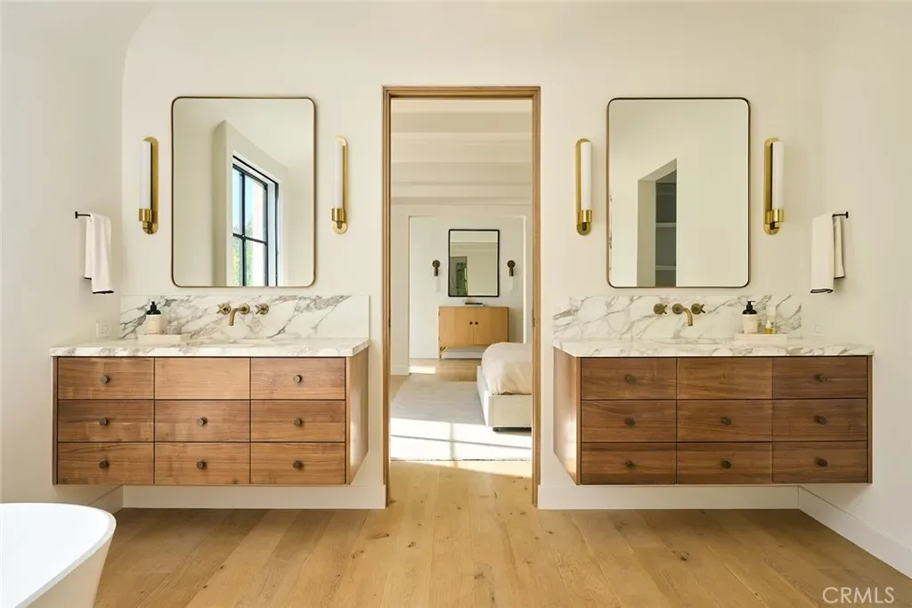 Designed by Domani Architecture and boasting unparalleled golf course views, this spectacular estate embodies a rare fusion of old-world craftsmanship and cutting-edge innovation. Offering five bedrooms and five-and-a-half baths in 6,506 square feet on a .34-acre lot, this architecturally stunning residence is truly one-of-a-kind. A single-lane driveway and rear-facing gated garages ensure a gracious and elegant curb appeal. Handcrafted steel windows, oak rift doors throughout, a slate roof, smooth stucco with copper accents, and a rich palette of the finest materials set the tone for uncompromising elegance. Stepping through the solid wood front door, a view unfolds from the intimate foyer to the light-filled courtyard, where a covered outdoor loggia extends the living spaces seamlessly. Designed for privacy and tranquility, this central gathering space creates the perfect area for entertaining. Inside, nine-foot-tall steel windows and doors blur the lines between interior and exterior, creating both drama and warmth. The living room, anchored by French Oak floors and a Town-and-Country fireplace, flows effortlessly into the chef’s kitchen, where a French Lacanche range, Calacatta marble countertops, and a butler’s pantry with a checkerboard marbled floor create the ultimate culinary experience. The Primary Suite is a private retreat with motorized window treatments, a marble-slab shower, and custom cabinetry. Additional bedrooms are spacious and inviting with designer finishes and built-in storage. Created to entertain with ease, the basement boasts a temperature-controlled wine cellar, a home theater with a 120” projector and Dolby surround sound, and a lounge finished in Roman clay. Outside, a saltwater plaster pool, fire pit, an outdoor kitchen, and French limestone patios were created to enjoy year-round. State-of-the-art amenities include a Savant Smart Home system, Lutron lighting, and distributed audio across multiple music zones, as well as a water filtration system and a natural gas-powered generator, ensuring smooth functionality. This extraordinary estate blends consummate craftsmanship with modern innovation, offering refined luxury in an idyllic setting.