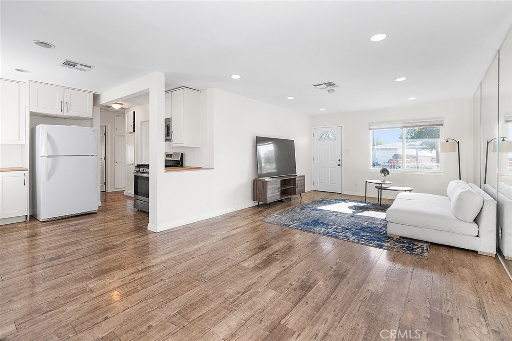 Four bedroom, two bathroom property located in the heart of Panorama City offering approximately 1,374 square feet of living space between the main residence and permitted ADU. The front home features 3 bedrooms and 1 bathroom with an open layout, wood style flooring, recessed lighting, and abundant natural light. The kitchen provides ample cabinetry and counter space with access to the backyard, creating a functional design for everyday living and entertaining.