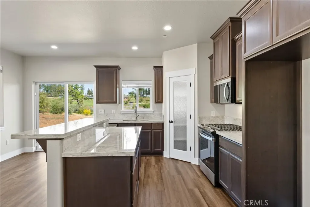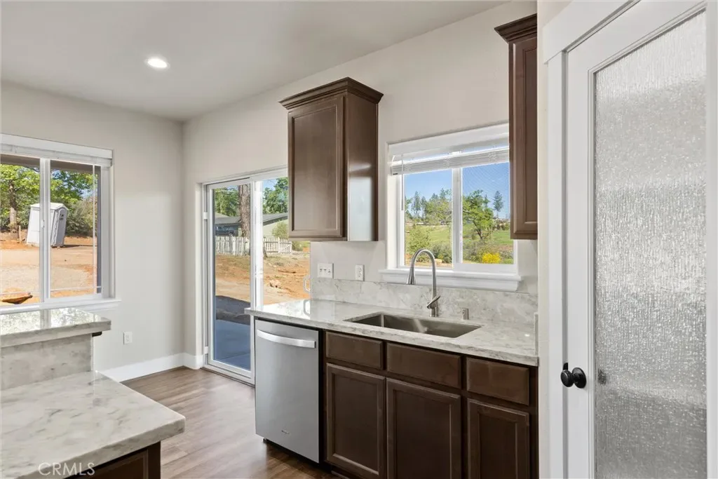 Scheduled for completion by the end of April, this quality-built Anderson Builder Corporation home is one that you will fall in love with. Located on a dead-end road on .57 of an acre, this property has so many possibilities. This home has an open floor plan with a spacious kitchen that features elegant marble countertops, a breakfast bar, stainless steel appliances, a gas range, microwave/range hood, and a classic stainless steel farmhouse sink. A generous pantry and soft-closing cabinetry add both convenience and style. The kitchen flows seamlessly into the dining and living areas, where large windows and a sliding glass door provide wonderful natural light and an open and airy feel. Luxury vinyl plank flooring runs throughout, offering both durability and modern appeal. Additional upgrades include mini-blind window coverings, upgraded closet systems, and insulated interior walls between bedrooms and bathrooms for added privacy and comfort. There are mini-split heating and air conditioning systems in all bedrooms and the family room to ensure year-round comfort. The detached garage is a standout feature, complete with insulated walls for temperature consistency, a convenient half bath, and RV hookups alongside. For additional peace of mind and efficiency, the home includes fire sprinklers, 4 kW owned solar panels, and a one-year fit and finish warranty. This great property is offered to owner-occupied buyers only – a wonderful home to make your next home.