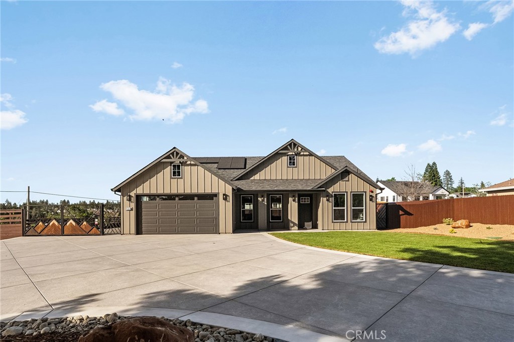 Welcome to this beautifully crafted new build on De Mille Road, thoughtfully designed with the Paradise lifestyle in mind. Offering 1,889 square feet with 3 bedrooms and 2 bathrooms, this home blends modern comfort with custom details and a true Ridge feel. From the moment you arrive, you’re welcomed by an expansive concrete driveway with ample RV and storage parking, hookups, and multiple access points, all secured by custom fabricated gates. A secondary gated access leads to a dedicated area ideal for a future workshop or additional utility space. The property is framed by mature redwood trees, fully landscaped front and rear yards, and custom horizontal fencing, creating privacy while capturing the surrounding mountain peaks. Inside, the home features a clean, open-concept layout with a split-bedroom design for added privacy, while white oak wood finish details bring warmth and character throughout, complemented by modern styling and thoughtful touches like the checkered tile laundry floor. The kitchen and living areas flow seamlessly, offering a space that feels both elevated and inviting. Set in a peaceful location just minutes from town, this property offers the rare combination of new construction, usable space, RV functionality, and custom craftsmanship, making it a standout opportunity on the Ridge.