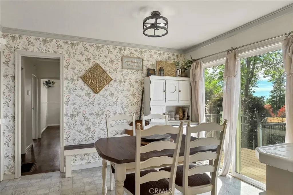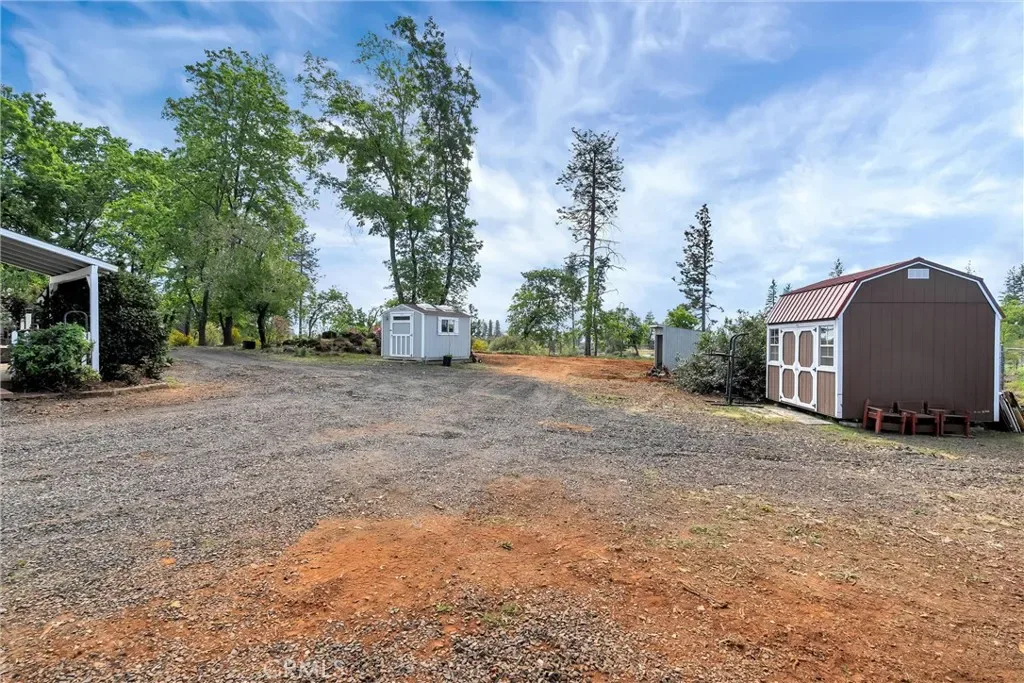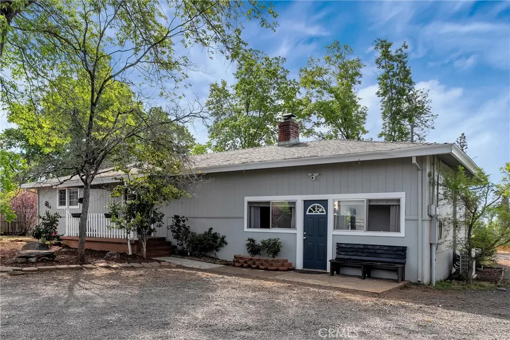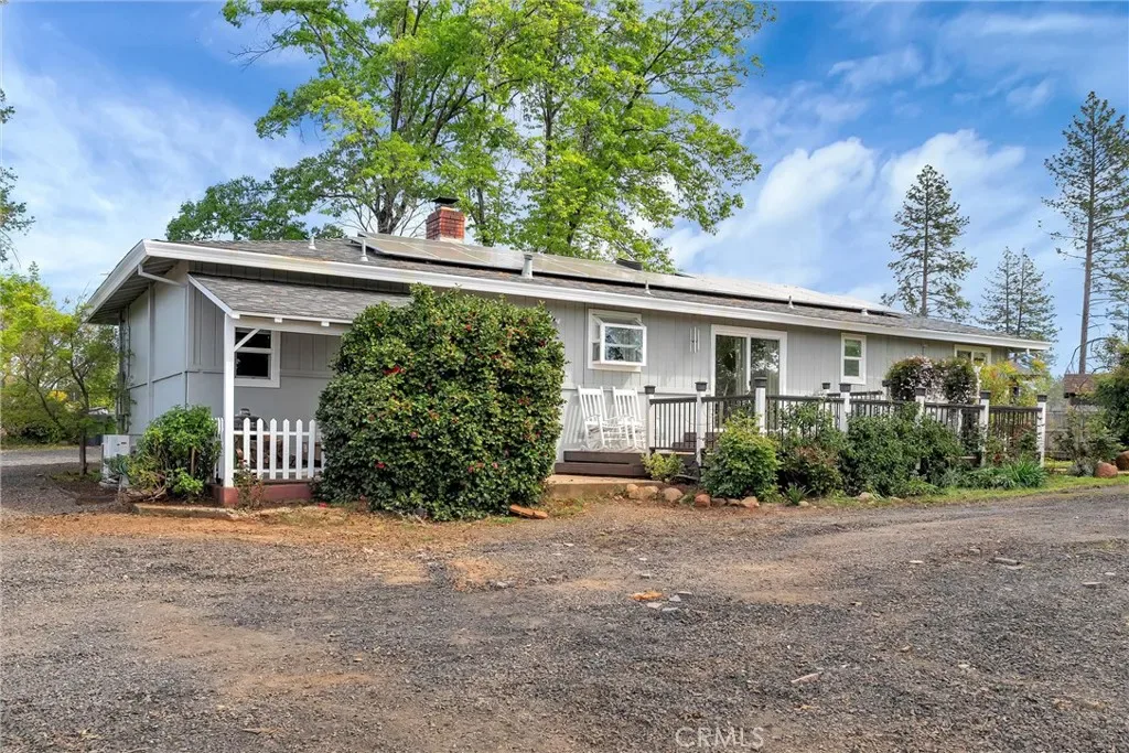 This charming 1950s home blends vintage character with modern upgrades, offering a warm and inviting retreat on a private lane. Featuring 3 bedrooms, 2 bathrooms, and 1,612 square feet of living space, the home sits on a spacious 0.81-acre lot. Inside, you’ll find original hardwood floors that have been beautifully refinished, complemented by new carpet, fresh paint, and a renovated kitchen. The home is equipped with 18 owned solar panels, a whole-house water filtration system, and a mini-split HVAC system installed in 2018. The roof was replaced in 2017, ensuring peace of mind for years to come. Step outside to enjoy breathtaking sunset views from the expansive deck, perfect for entertaining. A covered BBQ area makes year-round grilling a breeze. The property also includes a 900 sq ft insulated detached garage/shop with 50amp service and 220v, ideal for hobbyists or DIY enthusiasts. Two detached sheds provide ample storage, and the fully fenced yard with an electric gate offers privacy and security. Located close to Starbucks, restaurants, shopping, and just a short drive to Chico, this home offers both tranquility and convenience. Come experience the charm and character of this lovingly maintained Paradise gem.