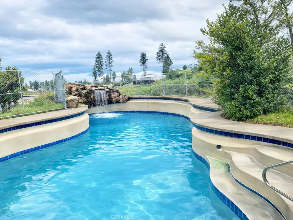 The property features an existing in-ground swimming pool with a rock waterfall feature, concrete patio, and paved driveway—an uncommon bonus for vacant land and a major value add in today’s market. Mature, healthy trees and gentle slope create a beautiful, usable setting with multiple potential building sites.