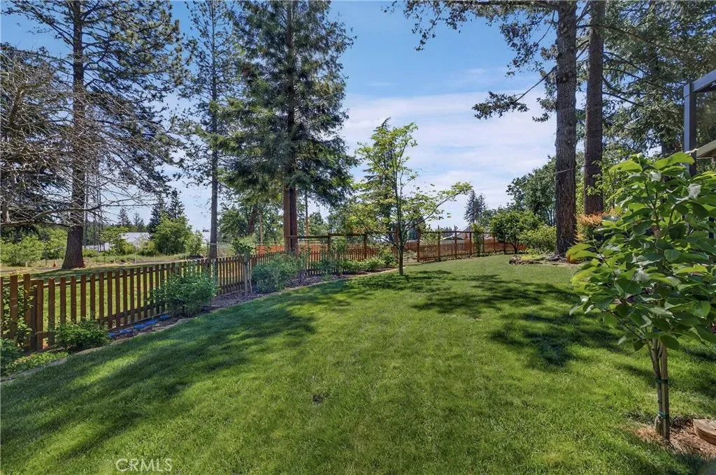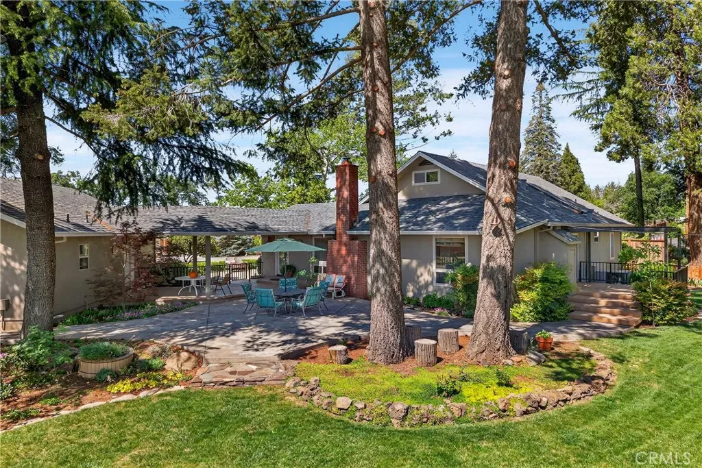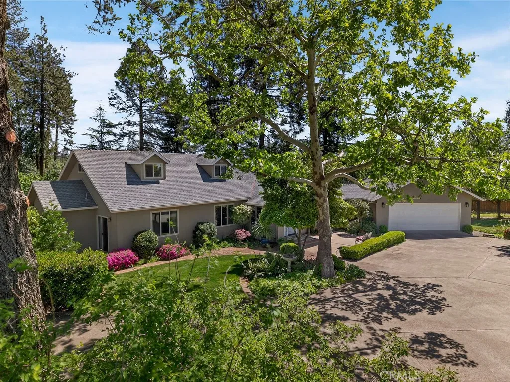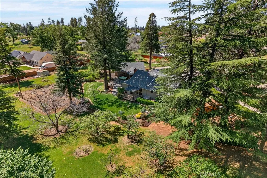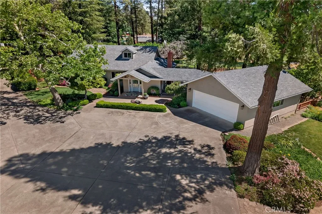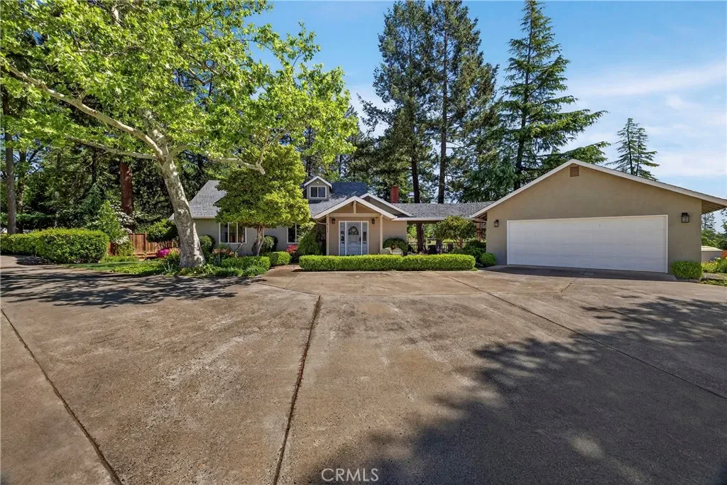 Wow this property is sure to impress! Pride in ownership best describes this 2.1 Acre property. Craftsman meets Contemporary! Privacy and seclusion and yet close to central Paradise. The concrete driveway and pristine landscape welcomes you to this special property. This gorgeous home offers a fantastic kitchen with cherry wood cabinets with pull-out drawers, Dacor built in range with stainless hood, Granite counters, large island, double oven, dishwasher, Kohler professional sink, recessed lighting, kitchen aid refrigerator and built in microwave. The kitchen overlooks the living room with crown molding, wood stove insert accented with tile from floor to ceiling. The living room also has a dining room area with a slider to the composite back deck with a louvered covering that can close or be open. Down the hall is the Primary bedroom with custom built in drawers, cabinets, slider to a private patio. The primary bath offers radiant heated tiled floors, tiled shower with glass surround, two sink vanity w/ granite counters and crown molding. Next to the primary is a bonus room with a variety of uses. Upstairs are two more bedrooms with their own central heat and air system. The main floor has its own HVAC system. The fantastic breezeway gives almost 300 sq. ft. of covered outdoor living with upgraded Poly Tech concrete covering. The breezeway attached to the huge over 600 sq. ft. garage with built in cabinets, laundry, bathroom with newly tiled shower, Poly Tech floor and hot water heater. Across from the home is a 28X36 Shop with 220-volt plug, stucco exterior, 2×6 insulated walls, double pane windows and two automatic roll up doors. The landscaped grounds offer a wonderful garden and many varieties of trees such as plum, cherry, orange, mandarins, lime, lemon, fig, roses, camellias, Japanese maples and many more. The home also has a Pelican water filtration system. There was an ADU that was lost in the fire, but the septic system is still there and was inspected and all passed, the system was permitted for a two-bedroom ADU. If you’re looking for space, privacy, wonderful Paradise setting this could be the place.