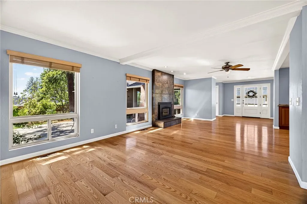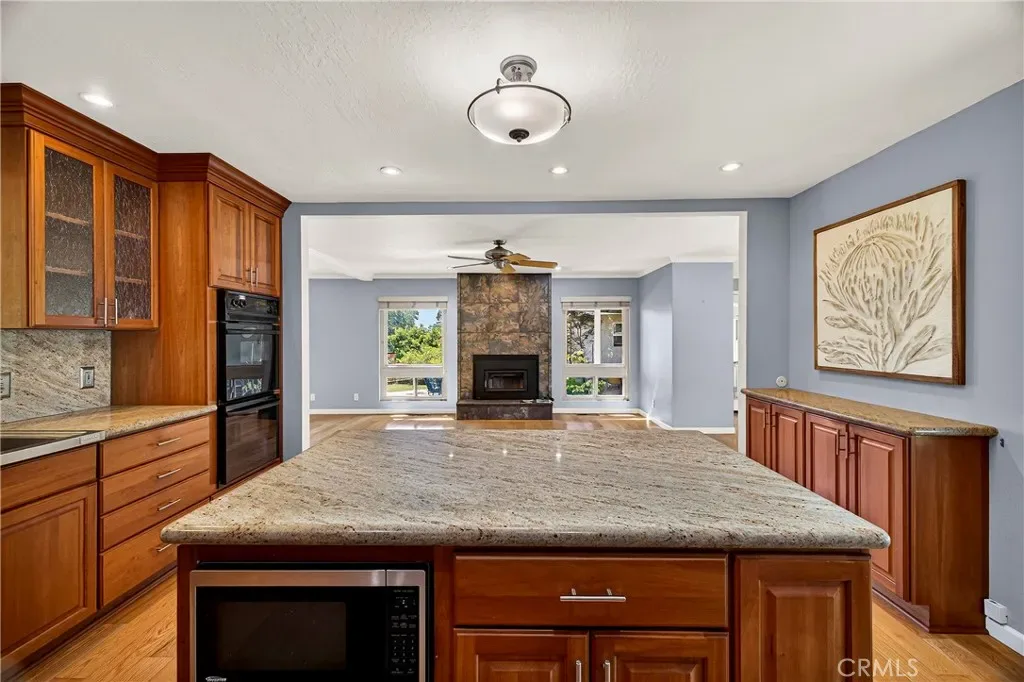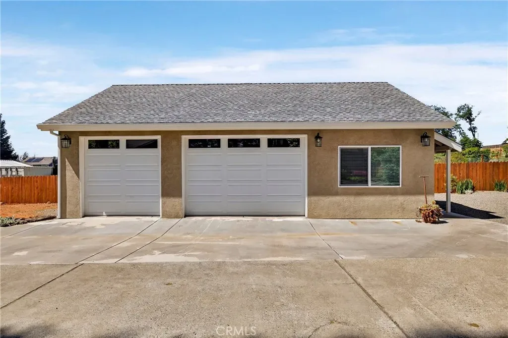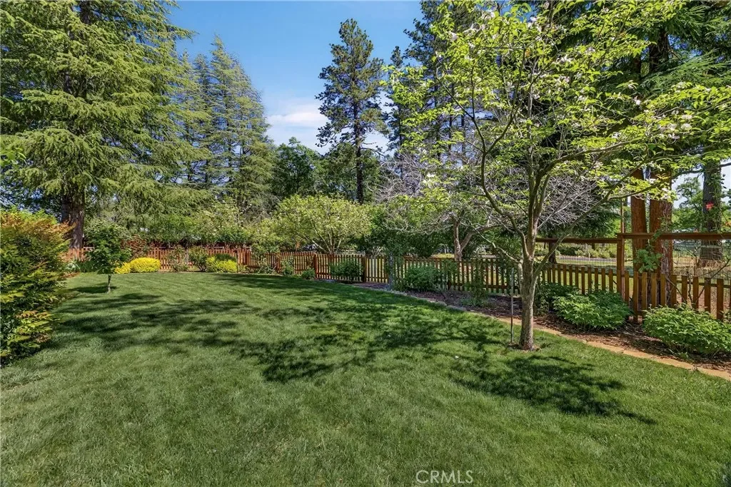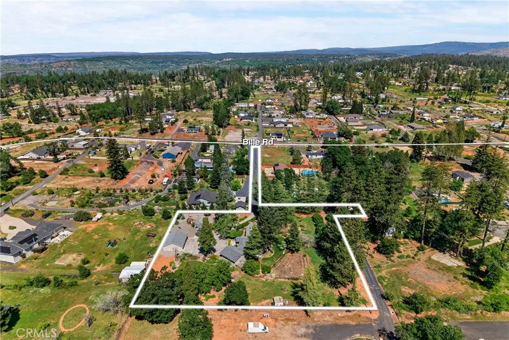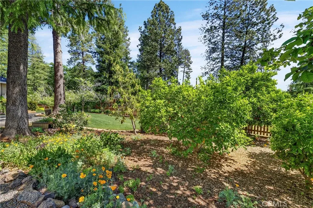 Wow this property is sure to impress! Pride in ownership best describes this 2.1 Acre property. Craftsman meets Contemporary! Privacy and seclusion and yet close to central Paradise. The concrete driveway and pristine landscape welcomes you to this special property. This gorgeous home offers a fantastic kitchen with cherry wood cabinets with pull-out drawers, Dacor built in range with stainless hood, Granite counters, large island, double oven, dishwasher, Kohler professional sink, recessed lighting, kitchen aid refrigerator and built in microwave. The kitchen overlooks the living room with crown molding, wood stove insert accented with tile from floor to ceiling. The living room also has a dining room area with a slider to the composite back deck with a louvered covering that can close or be open. Down the hall is the Primary bedroom with custom built in drawers, cabinets, slider to a private patio. The primary bath offers radiant heated tiled floors, tiled shower with glass surround, two sink vanity w/ granite counters and crown molding. Next to the primary is a bonus room with a variety of uses. Upstairs are two more bedrooms with their own central heat and air system. The main floor has its own HVAC system. The fantastic breezeway gives almost 300 sq. ft. of covered outdoor living with upgraded Poly Tech concrete covering. The breezeway attached to the huge over 600 sq. ft. garage with built in cabinets, laundry, bathroom with newly tiled shower, Poly Tech floor and hot water heater. Across from the home is a 28X36 Shop with 220-volt plug, stucco exterior, 2×6 insulated walls, double pane windows and two automatic roll up doors. The landscaped grounds offer a wonderful garden and many varieties of trees such as plum, cherry, orange, mandarins, lime, lemon, fig, roses, camellias, Japanese maples and many more. The home also has a Pelican water filtration system. There was an ADU that was lost in the fire, but the septic system is still there and was inspected and all passed, the system was permitted for a two-bedroom ADU. If you’re looking for space, privacy, wonderful Paradise setting this could be the place.