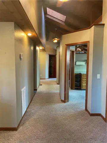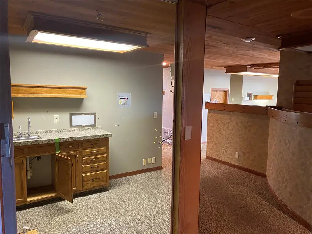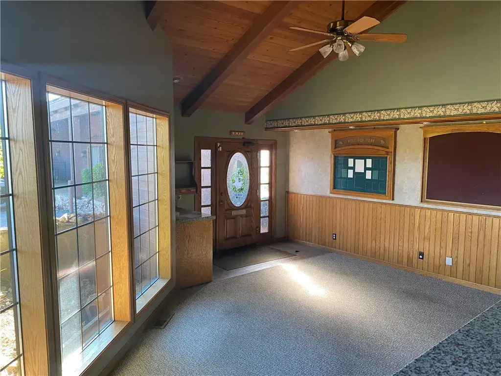 Currently configured as a dental practice, this versatile space could easily be adapted for a wide range of professional uses. The beautifully appointed interior features a spacious and welcoming waiting area with soaring vaulted ceilings, a prominent reception area, and multiple private offices and consultation rooms.