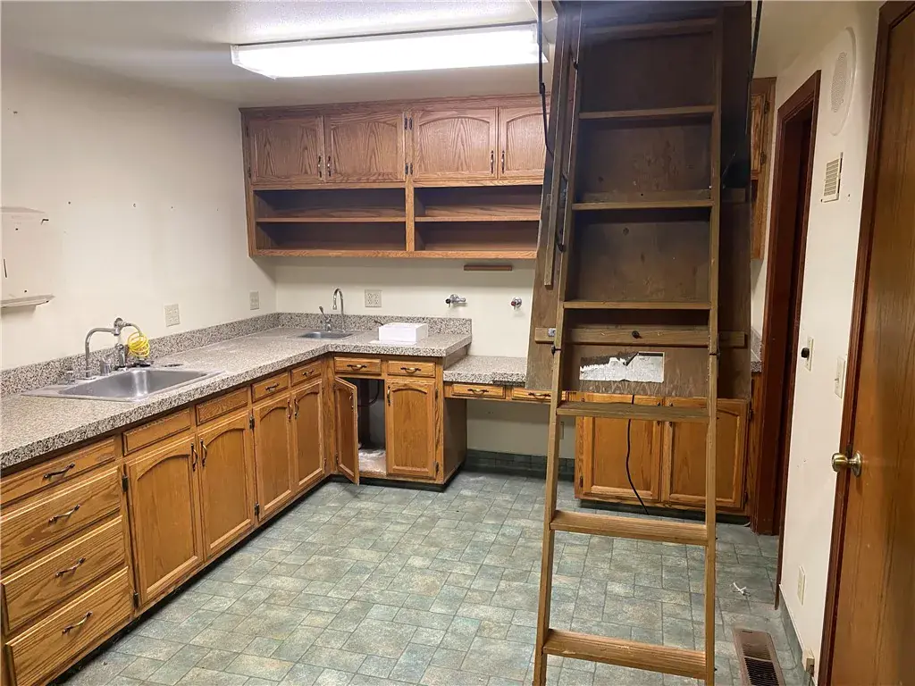 Upstairs, you’ll find a comfortable staff break room with a kitchenette and restroom, plus an additional private office space or potential apartment complete with a full bathroom and shower—ideal for extended use or future conversion.
