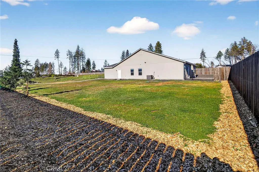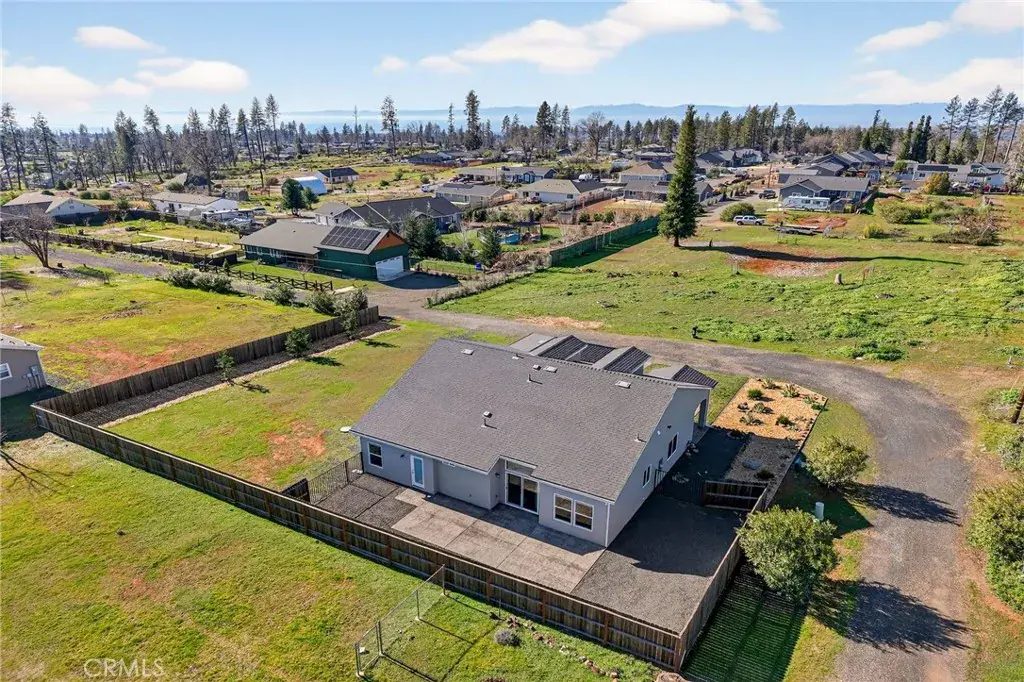 BEAUTIFUL 2022 CUSTOM-BUILT HOME NEAR BILLE PARK!! Welcome to this stunning, custom home offering 3 bedrooms plus a den, 2 bathrooms, and 1,726 sq. ft. of thoughtfully designed living space. From the moment you arrive, you’ll be impressed by the charming landscaping and textured, painted concrete walkway leading to the front entrance. Step inside and instantly feel at home with soaring 10-foot ceilings and an inviting, open layout. This home features both living and family rooms, plus a versatile den—perfect for a home office, flex space, or potential 4th bedroom. The kitchen is a showstopper, showcasing beautiful marble countertops throughout, a large center island, stainless steel appliances, breakfast bar, and a cozy dinette area—ideal for everyday living and entertaining alike. Retreat to the private primary suite featuring 10-foot ceilings, a spacious walk-in closet, and a well-appointed ensuite bath carrying on the marble counters throughout. Enjoy outdoor living with a concrete back patio that opens to a fully fenced backyard, complete with a cross-fenced and gated area—perfect for pets, entertaining, or creating separate outdoor spaces. There’s still plenty of room to add your own personal touches and design the backyard oasis of your dreams. Additional highlights include a two-car garage with finished floors, ample RV and boat parking along the side of the home, and the convenience of a fire hydrant located just a few feet from the property. With new construction continuing throughout the neighborhood, this is your chance to be back on the Ridge in a spacious, beautifully built home. Enjoy a nice end-of-land location that is just minutes to downtown Paradise and only 12 miles to Chico. Best of all, the home is within walking distance to the beautiful Bille Park, offering two playgrounds, BBQ areas, and scenic walking trails with stunning canyon views. Don’t miss this incredible opportunity—schedule your showing today!