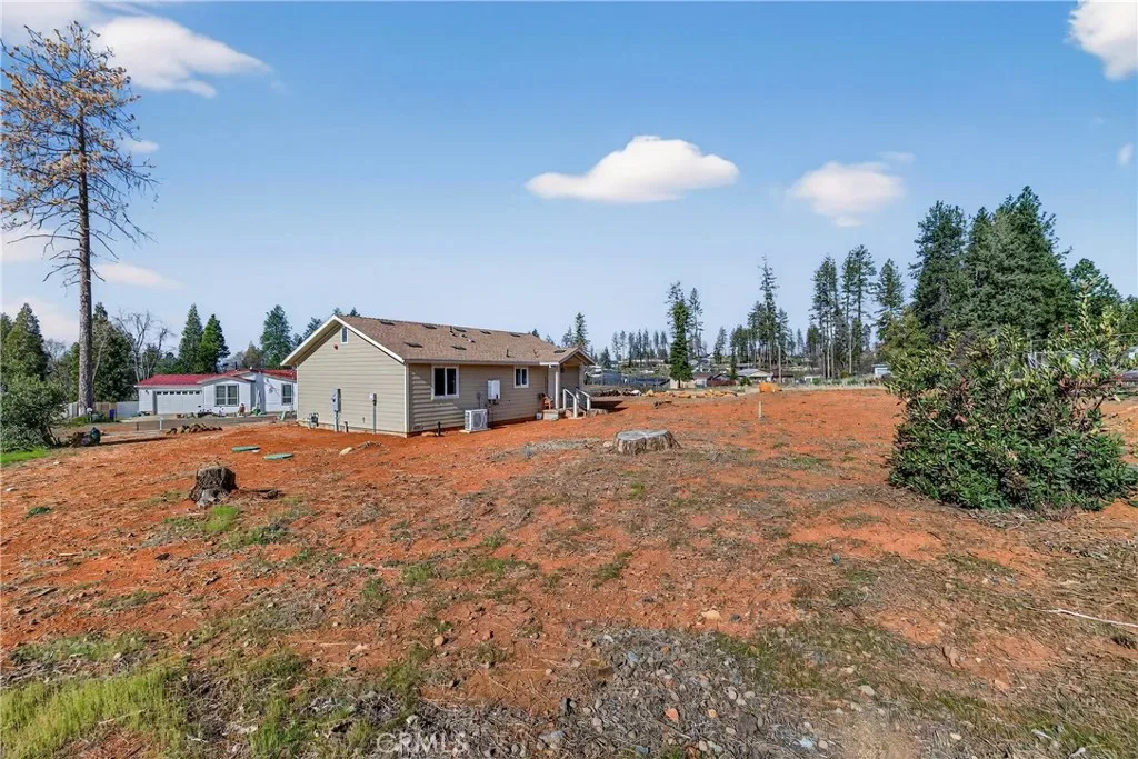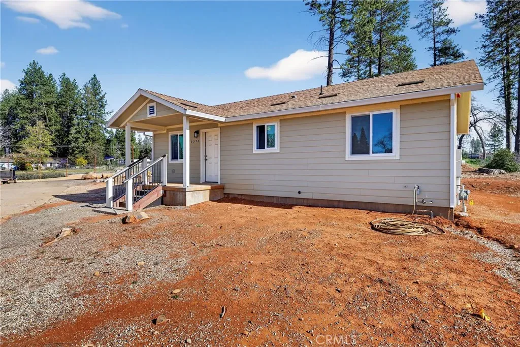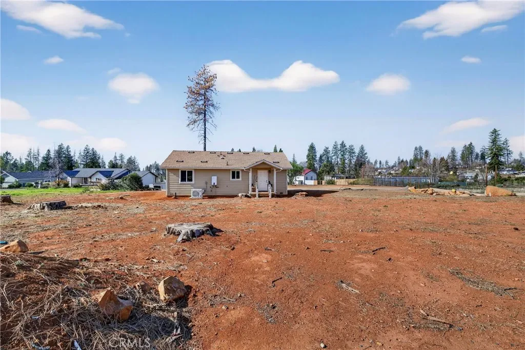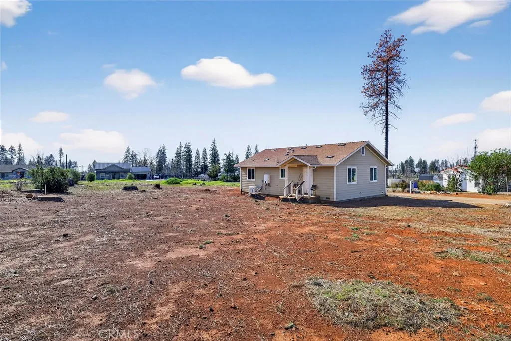 Central Paradise Location for this 2-bedroom 1 bath 2023 built SITE BUILT home at the end of the Cul-De-Sac. The spacious .41-acre lot is level and has room for a shop or garage. Insurance quote $888.86 per year no Cal Fair Plan. The covered concrete front porch welcomes you into the home. The main living area has the open concept with the living room, dining room and kitchen. The kitchen offers wood cabinets, stainless steel sink, 5 burner free standing oven/range and laminated counter tops. The home also offers dual pane windows with wood accent windowsills, central whole house fan, mini split efficient heating and air, cement board siding and a tankless water heater. The bathroom has an upgraded wood vanity, solid surface countertop and tub/shower combination. Both bedrooms are spacious and have upgraded ceiling fan / light fixtures. The refrigerator, washer and dryer are included with the home. Barely lived in very clean. This home is ready for a new Paradise resident.