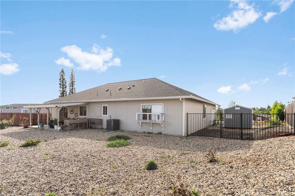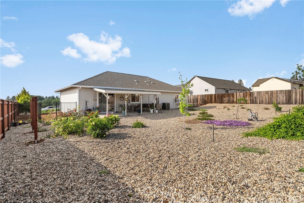 Built by local Paradise contractor West Construction and thoughtfully improved upon by its first owner, this move-in ready home offers quality construction and added enhancements throughout! This attractive home is located in lower Paradise in the highly desirable Circlewood neighborhood and just 8 miles from Chico for an easy commute. Offering 1,771 sq ft, this 3-bed, 2-bath home features a well-designed open floor plan with 9-foot ceilings throughout and a 10-foot tray ceiling in the living room, creating a spacious and functional main living area. Interior highlights include Charter Oak luxury vinyl plank flooring, 5-inch baseboards, and recessed LED lighting throughout. The kitchen is equipped with a 7-foot breakfast bar, granite slab countertops, glass tile backsplash, walk-in pantry, stainless undermount sink, shaker-style cabinetry with dovetailed soft-close drawers, natural gas range/oven, built-in microwave, and dishwasher. The adjacent dining area opens to a covered 10×20 concrete patio and a fully fenced backyard. Additional features include central heating and air, plus a QuietCool whole house fan, tankless water heater, and a dedicated laundry room with gas & electric dryer hookups. Guest bedrooms are spacious, and the guest bath includes a granite vanity and tub/shower combination. The primary suite offers a walk-in closet, dual sink granite vanity, step-in shower, and a 7-foot “catio” run attached to the bedroom window. The oversized finished two-car garage features an epoxy floor and 5-inch baseboards and houses the whole house water softener system. The property also provides extensive RV/boat/trailer parking with full RV hookups. Exterior amenities include a covered back patio with water and power for year-round use, fenced and cross-fenced backyard with a cross-fenced dedicated side yard, and fully landscaped grounds with weed barrier, decorative rock, and established plantings including “showcase roses” all on a timed drip system. The front yard includes a lawn with timed sprinklers, solar driveway lighting, motion lights at front and rear, a new full-size flagpole, and a 10×10 storage shed alongside the garage. This property is designated as a “Firewise” home within a “Firewise neighborhood”, with fire-safe construction and landscaping designed to support favorable insurance options for the area. Located among other quality custom homes, this is the perfect opportunity for a “better than new” home in a desirable Paradise setting.