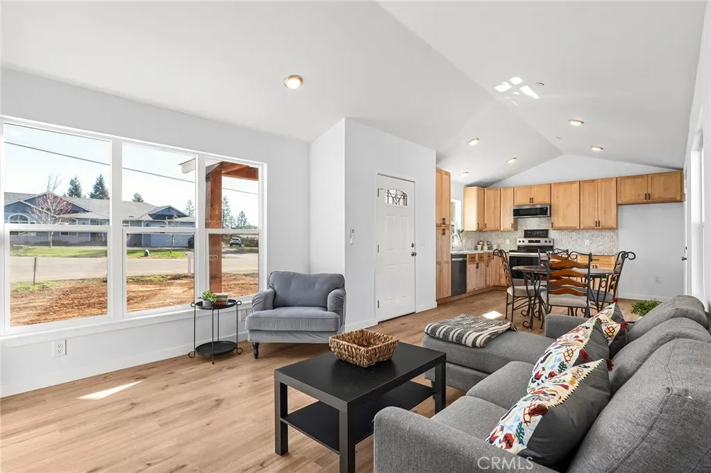 Welcome to affordable comfort in this contractor-built home, ideally located in beautiful Paradise near the end of a quaint cul-de-sac and within walking distance to local elementary schools. This 2-bedroom, 1-bath gem offers a spacious open floor plan set on a large lot with a detached garage with generous front and back yards -perfect for those seeking both functionality and flexibility. The kitchen is a standout feature, showcasing custom wood cabinetry enhanced with granite countertops and a decorative tile backsplash, along with recessed lighting and durable laminate flooring that flows throughout the home—designed with both style and everyday living in mind. The primary bedroom features a generous walk-in closet, providing comfortable and practical storage space. For year-round comfort, the home is equipped with an energy-efficient mini-split heating and cooling system with three heads, allowing for individualized climate control throughout the home. Adding even more value, a newly installed 2.8 kW owned solar system helps reduce energy costs and improve efficiency. Situated in a growing and revitalizing community, this property may qualify for the Town of Paradise First-Time Homebuyer Loan Program, providing an excellent opportunity for qualified buyers to achieve homeownership. Contact your favorite agent today and discover the benefits of living in beautiful Paradise