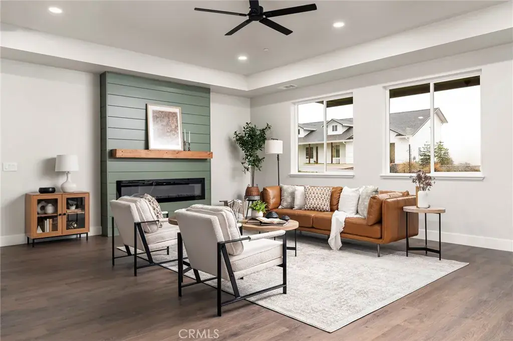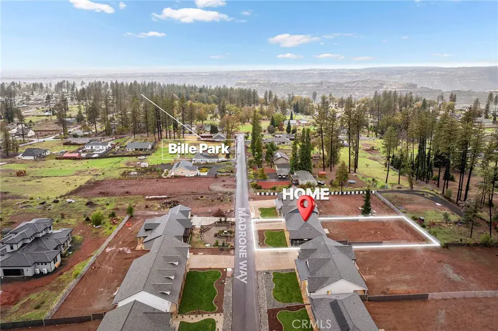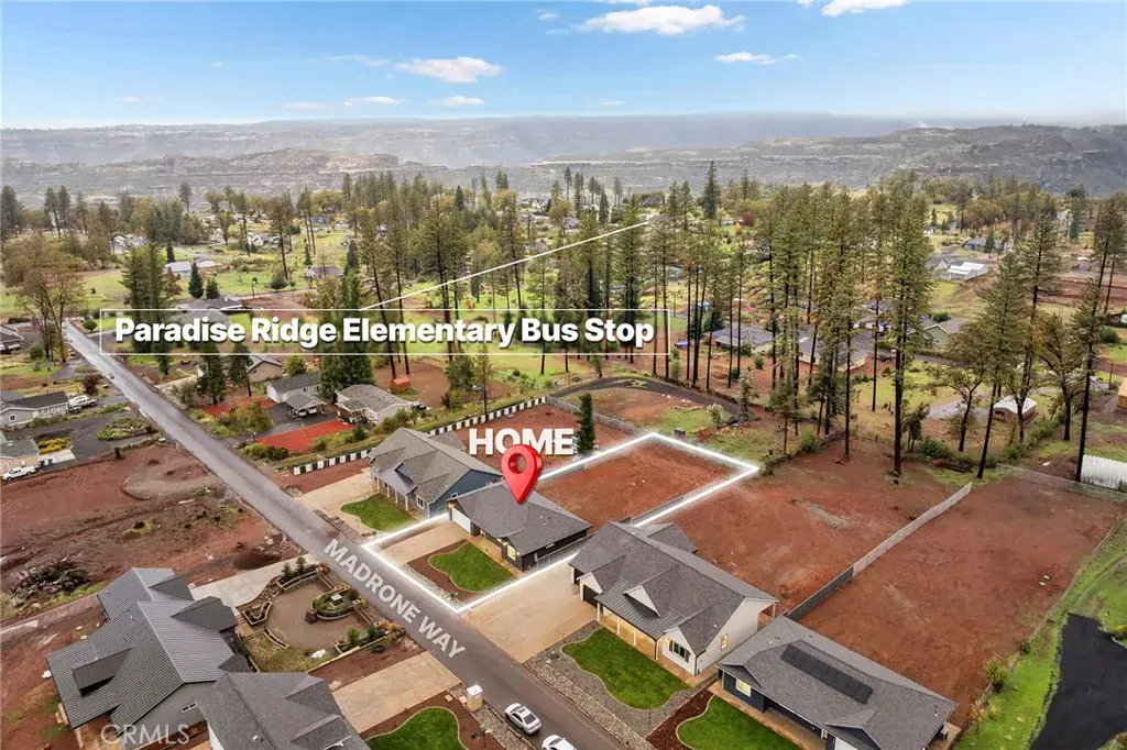 Modern design meets small-town charm here! This beautiful 3-bed, 2-bath home sits on one of Paradise’s most desirable, newly built streets—lined with gorgeous stick-built homes. Gone are the days of wondering what might be built next door; Madrone Way offers peace of mind and a true sense of community. If this home isn’t the one, come see what else is available on Madrone! Step inside and you’ll immediately be greeted by 9’ ceilings throughout, with 10’ tray ceilings in both the living room and the primary suite. The finishes set this home apart, with the green fireplace serving as an instant showstopper. The open-concept layout is perfect for entertaining, featuring a spacious kitchen with an L-shaped island and plenty of room for barstools—ideal for gatherings and everyday living. This split floor plan places two bedrooms, a full bath, and the laundry room on one side, while the primary suite enjoys its own private retreat on the other. The primary bathroom feels like a spa getaway, showcasing a striking wet room with a tile shower and soaking tub, all enclosed in glass for a sleek, modern touch. From the primary suite and back patio, enjoy beautiful sunsets that fill the sky each evening! Outside, you’ll love the fully fenced backyard, perfect for pets, play, and privacy. The location is unbeatable—tucked on the west side of town with a short drive to beloved Bille Park and easy access to Skyway, making it simple to reach anywhere in Paradise or beyond in minutes. Built by American Dream Construction, a trusted local builder known for quality and craftsmanship, this home includes an extra 6-months to the standard 12-month fit & finish warranty for added peace of mind. Plus, a brand-new, OWNED solar system (installed during escrow) for added efficiency and savings. For peace of mind, American Dream is one of the only builders in Paradise going above and beyond current wildfire safety standards. Each home is fully wildfire-prepared, featuring 5 feet of defensible space, Class A fire-rated roofing, ember-resistant Vulcan vents, and non-combustible gutter systems and downspouts—offering both beauty and resilience in one exceptional package. With great curb appeal, landscaping, fencing, a two-car garage, and thoughtful design throughout, 717 Madrone Way is a home you’ll love coming back to every day. Not to mention, SageSure quoted this property under $1900/yr – NO CA FAIR PLAN NEEDED!