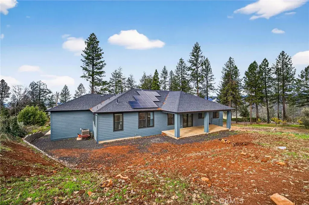 Experience luxury living in this stunning semi-custom home offering 1,963 sq. ft. of beautifully designed living space on a generous 0.48-acre lot with scenic views. This 3-bedroom plus office, 2-bath residence welcomes you with soaring ceilings, smooth-textured walls, engineered hardwood flooring, and a custom electric fireplace that adds warmth and style. The open-concept layout effortlessly connects the family room, dining area, and gourmet kitchen, featuring quartz countertops, a large island with pendant lighting, a basin sink, full backsplash, and a spacious walk-in pantry. Unwind in the expansive primary suite, complete with a soaking tub, separate shower, and a large walk-in closet. Enjoy energy-efficient living with owned solar, and take advantage of the impressive finished 3-car garage with 14-foot ceilings, 10-foot doors, and a 24-foot deep RV garage, plus abundant under-home storage. Step outside to a cozy backyard retreat with a large covered patio perfect for relaxing or hosting gatherings. Ideally situated in a family-friendly neighborhood with no HOA, this move-in-ready home is just minutes from shopping, dining, and local schools. Your dream home awaits.