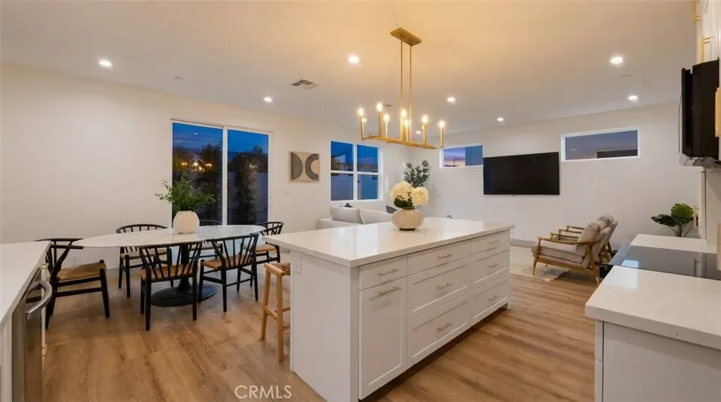 The first floor features spacious living and dining areas that connect seamlessly to a well-designed kitchen, creating an open space for daily living and entertaining. The kitchen includes quartz countertops, custom cabinetry with integrated storage, energy-efficient appliances, and clean modern finishes selected for durability and style. Luxury vinyl plank flooring runs throughout the entire home, adding durability and style.