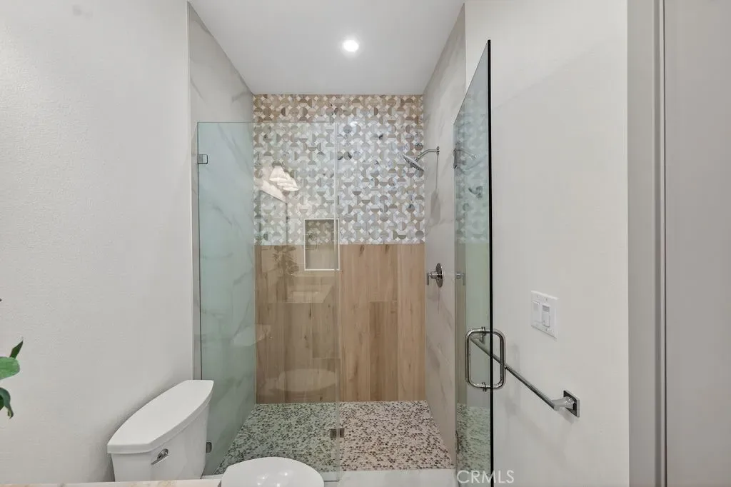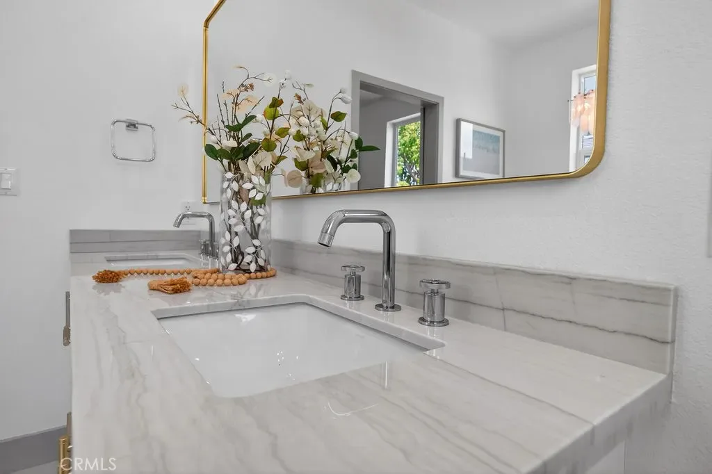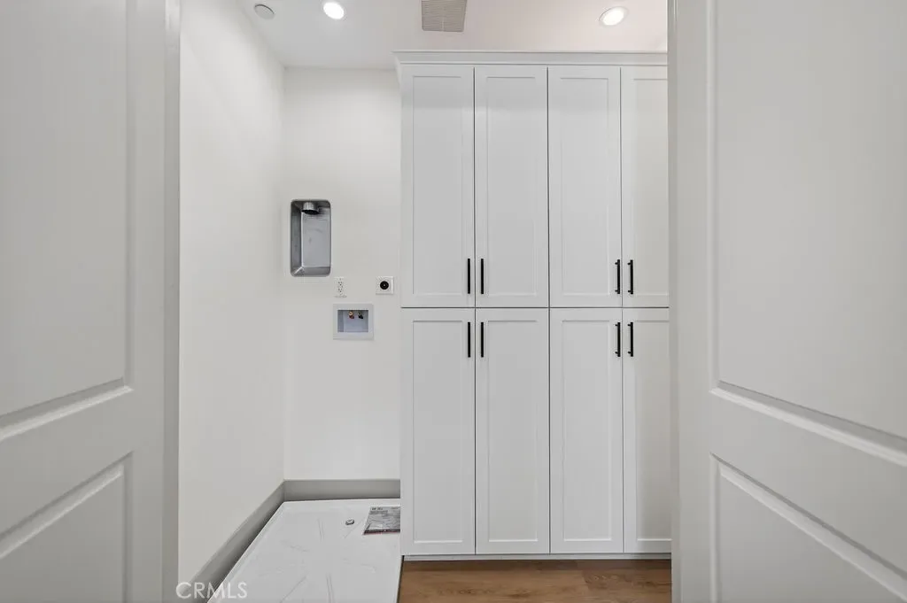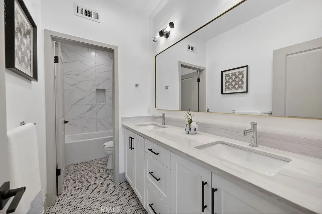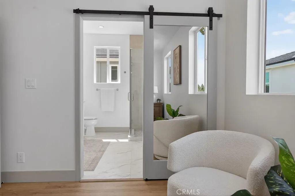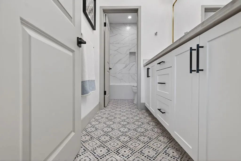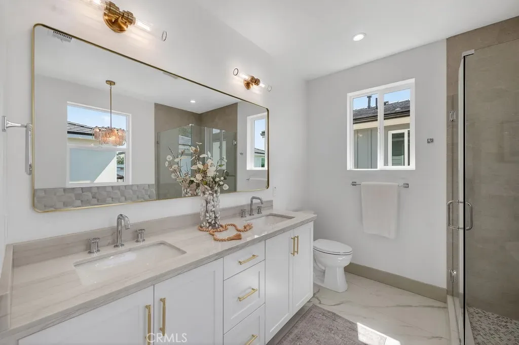 Upstairs, the primary suite offers a private retreat with an en-suite bathroom. Secondary bedrooms are well-sized for family, guests, or office use. Upstairs laundry and built-in storage add convenience. Additional highlights include modern lighting and plumbing fixtures, and custom tile finishes.