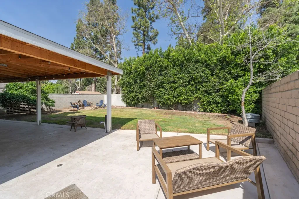 The private backyard is designed for entertaining, featuring a large covered patio, a cozy fire pit area, and plumbing with hot and cold water plus a sewer drain ready for a future BBQ island. The yard has been fully cemented with drainage to the front yard to help prevent flooding. Fourteen privacy trees provide added seclusion from Somerset Blvd., and a cinder block wall and dual gate allow both privacy and easy backyard access. Additional highlights include attic and above-garage storage, generous street parking, and the flexibility to use the two-car garage as extra living or hobby space.