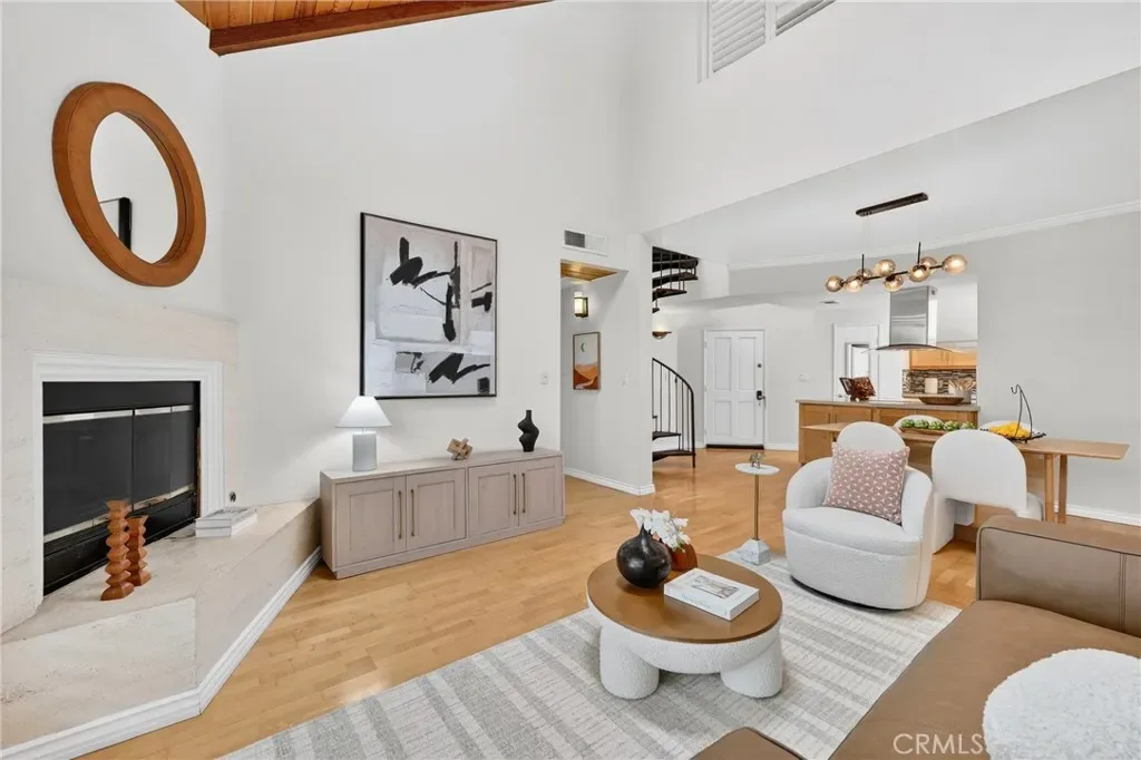 Vaulted ceilings and open layout seamlessly connects the living and dining areas—ideal for both everyday living and entertaining. Multiple balconies and patios extend the living space outdoors, offering inviting spots to relax or host guests. The convenience of an in-unit washer and dryer adds to the home’s comfort and functionality.