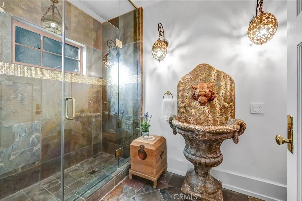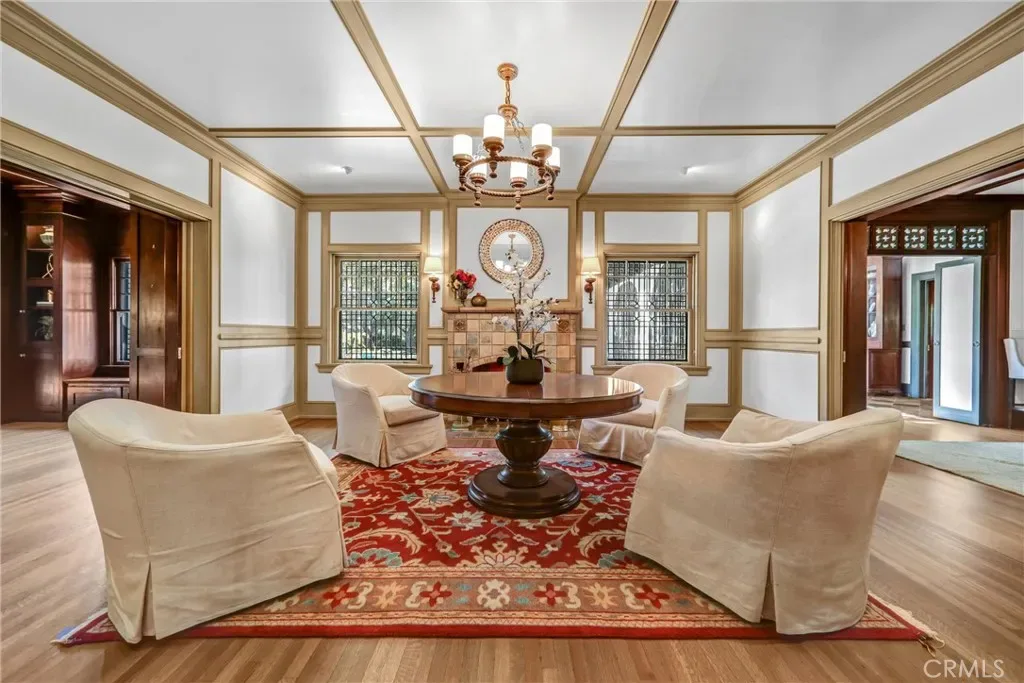 A Mission Revival and Arts & Crafts architectural masterpiece by acclaimed architect Joseph J. Blick, this estate blends timeless sophistication with modern luxury. Set behind secure iron gates in one of Pasadena’s most coveted enclaves, the residence spans approximately 12,000 square feet with 8 bedrooms and 10 baths, thoughtfully crafted for both grand entertaining and intimate everyday living. Surrounded by tall hedges and graceful palms, the impressive façade and manicured grounds evoke a sense of prestige and tranquility. Inside, rich mahogany and oak paneling, Grueby Faience and Batchelder tile fireplaces, and original brass hardware showcase the home’s distinguished pedigree. A dramatic foyer opens to elegant formal living and dining rooms, each enhanced by custom millwork, harmonious proportions, and sunlit interiors. At the heart of the home, the chef’s kitchen features professional-grade appliances, an oversized island, and a well-appointed butler’s pantry—perfect for culinary pursuits or casual gatherings. Multiple family rooms, a stately library or office, a private theater, and a home gym provide versatile spaces for work, leisure, and entertainment. The primary suite is a serene sanctuary, complete with a fireside sitting area, a newly completed spa-inspired bath, and generous walk-in closets. Additional bedrooms include ensuite baths and custom finishes, ensuring comfort and privacy for family and guests. Outdoors, resort-style living unfolds across expansive covered patios, lush gardens, and a sparkling pool and spa. A tranquil koi pond, wraparound balcony, and multiple pavilions enrich the landscape. A separate guest house and ample parking complete this exceptional estate. Moments from The Langham, South Lake Avenue’s boutiques and dining, and Old Town Pasadena, the property beautifully balances privacy, prestige, and convenience. Elegant. Grand. Unforgettable. More than a residence—an enduring statement of style, comfort, and sophistication. Per the previous owner, the house underwent reconstruction and restoration both in and outside btn 1989 and 1993, and the full foundation of reinforced concrete was laid beneath the house, conforming the state earthquake mandates.