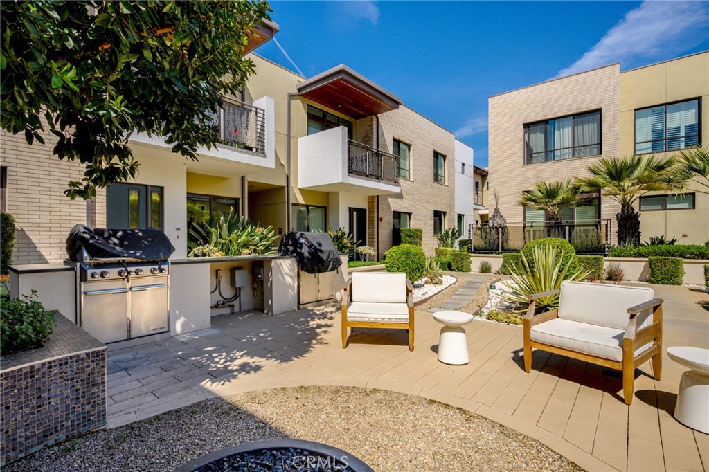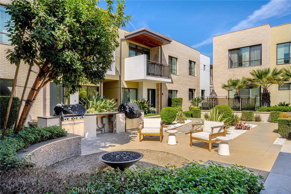 Residents can enjoy a tranquil outdoor lounge complete with a fire pit, fountain, and BBQ area, all surrounded by lush landscaping and peaceful courtyards—creating a true retreat-like setting.